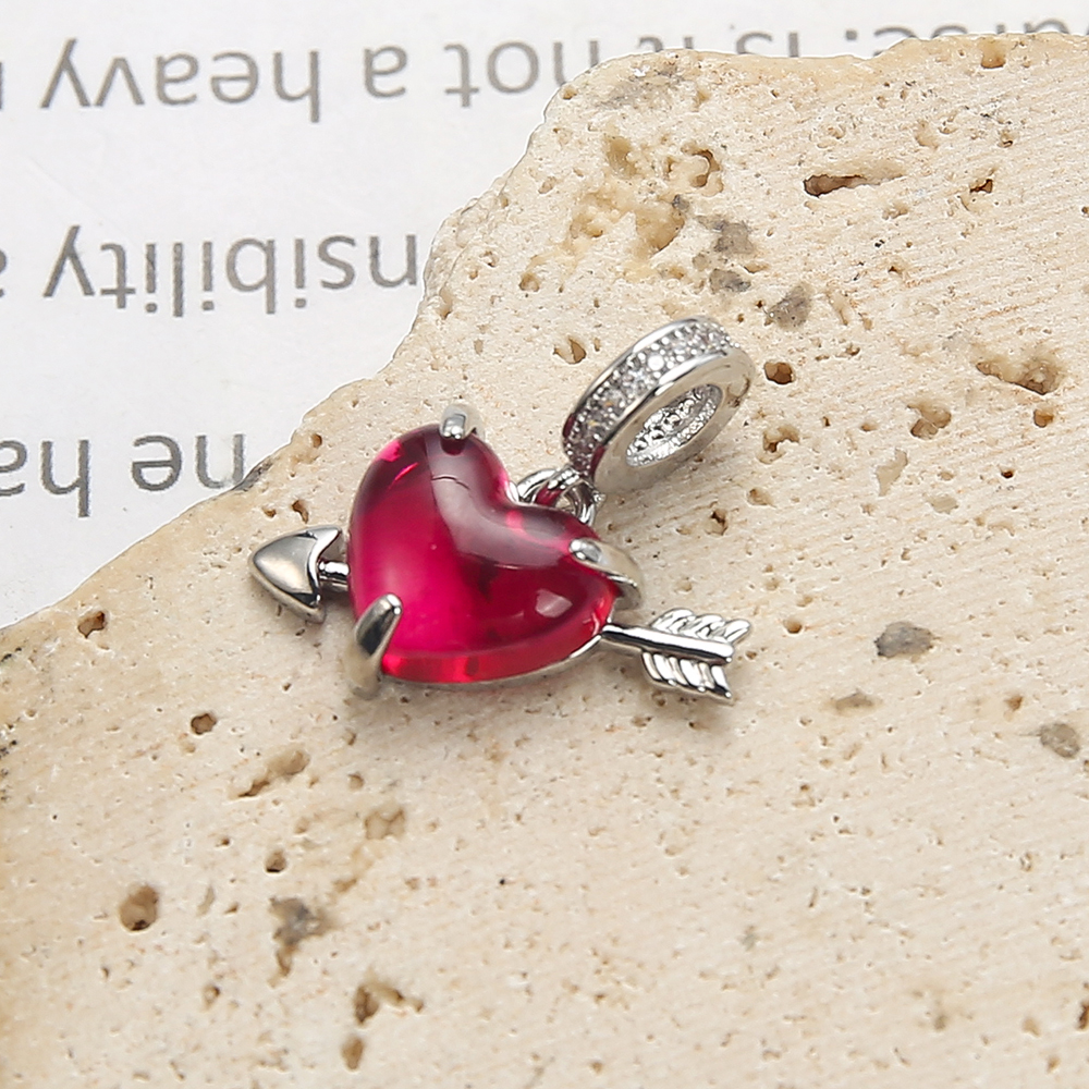 Crystal Hängen, Mässing, med Kristall, Hjärta, silver pläterad, DIY & micro bana cubic zirconia, nickel, bly och kadmium gratis, 13.80x5.33x20.60mm, 20PC/Bag, Säljs av Bag