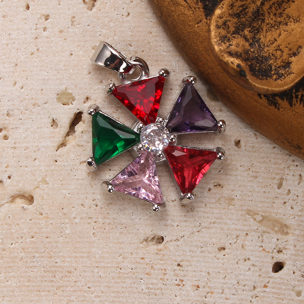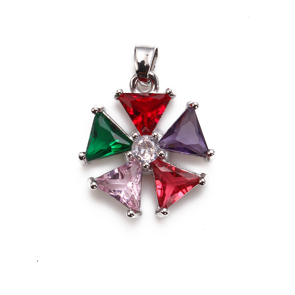 Crystal Hängen, Mässing, med Kristall, Blomma, plated, DIY & micro bana cubic zirconia, silver, nickel, bly och kadmium gratis, 16.66x5.79x21.82mm, 20PC/Bag, Säljs av Bag