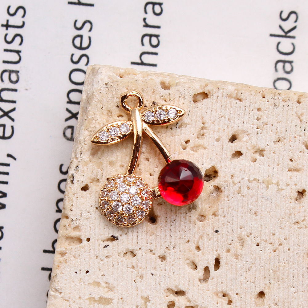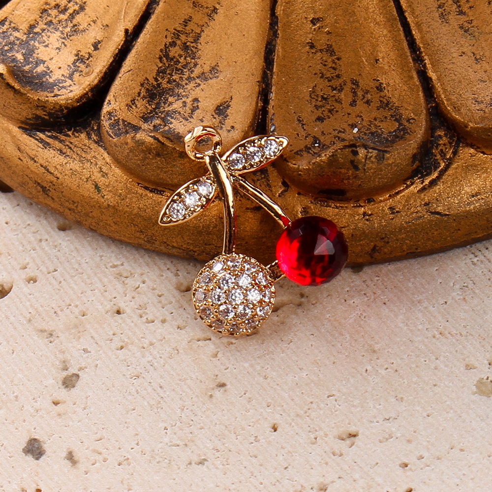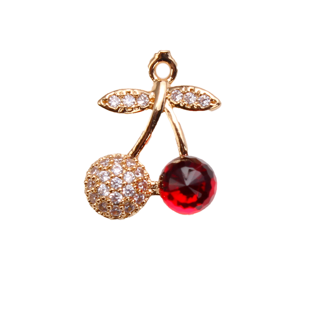 Crystal Hängen, Mässing, med Kristall, Körsbär, plated, DIY & micro bana cubic zirconia, gyllene, 13.78x6.90x17.08mm, 20PC/Bag, Säljs av Bag