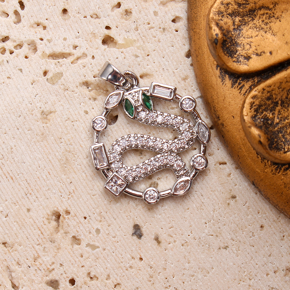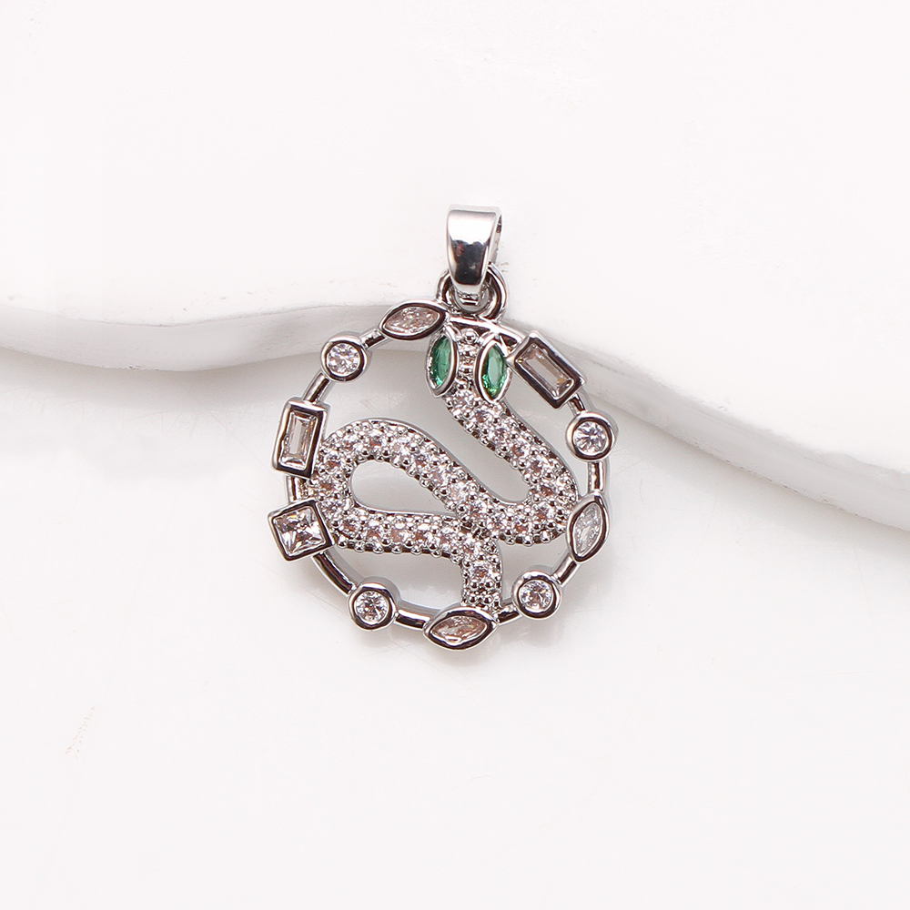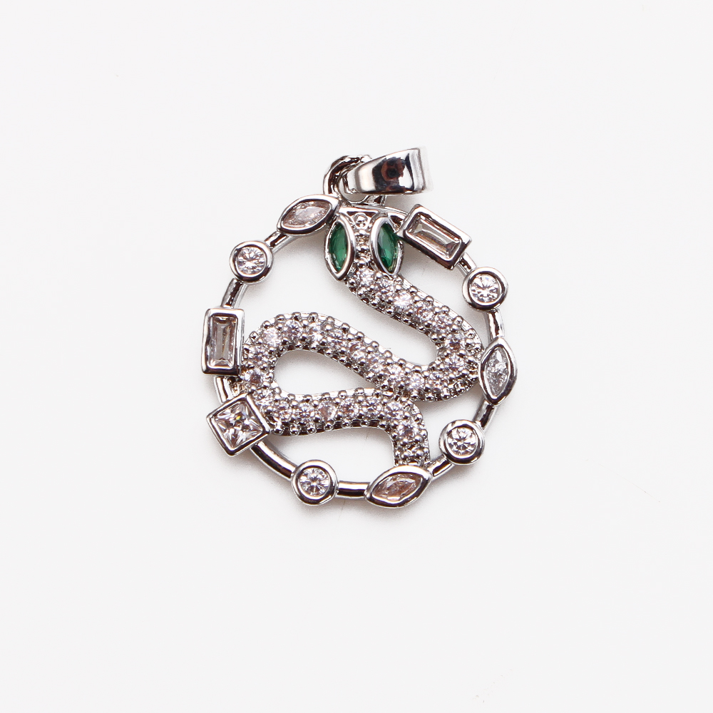 Crystal Hängen, Mässing, med Kristall, Snake, plated, DIY & micro bana cubic zirconia & ihålig, silver, nickel, bly och kadmium gratis, 19.04x2.23x24.59mm, 20PC/Bag, Säljs av Bag