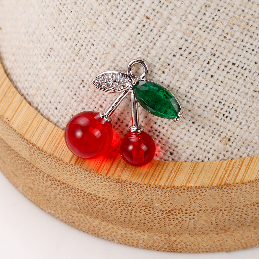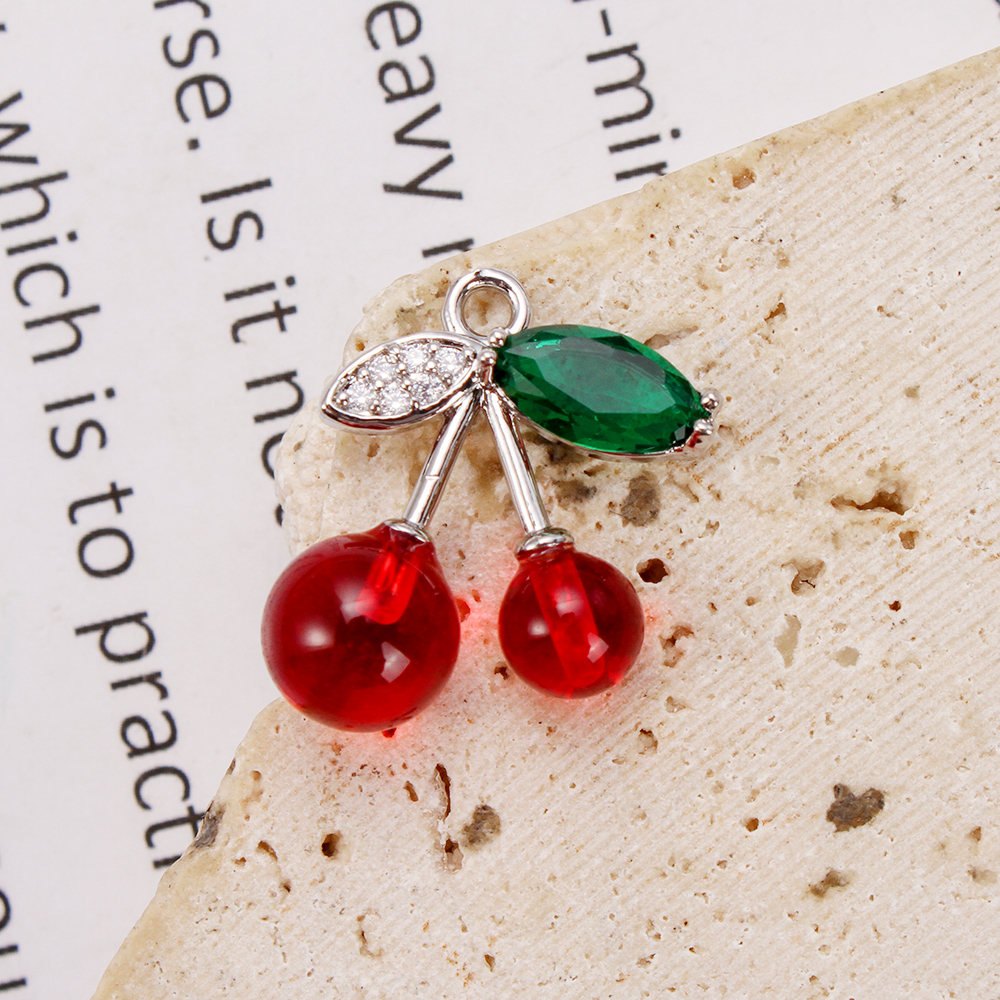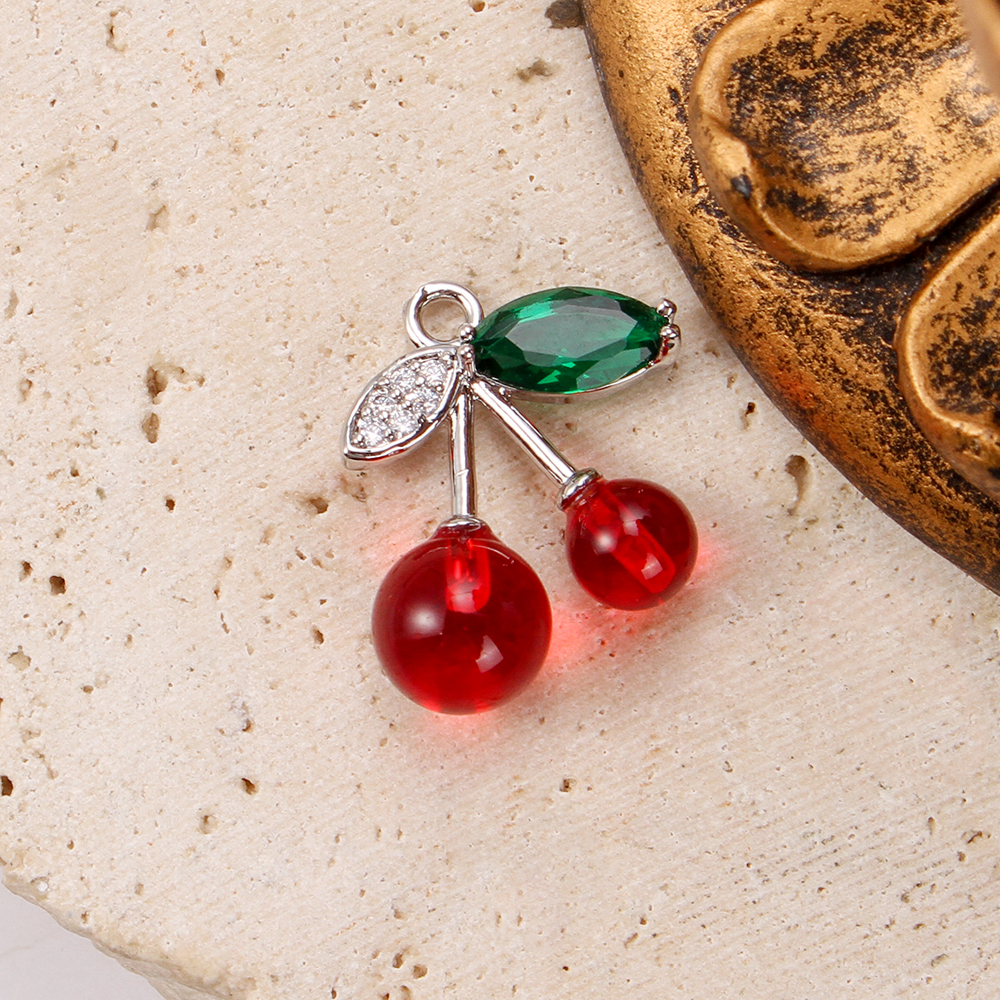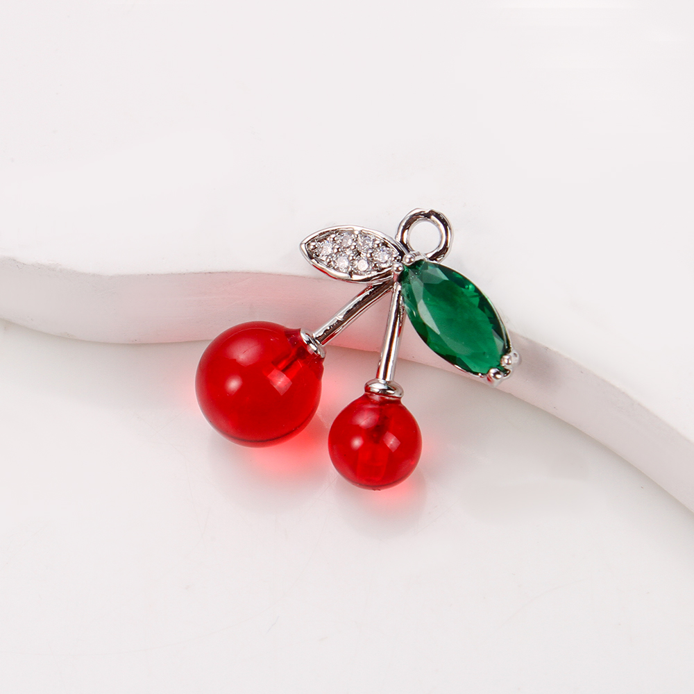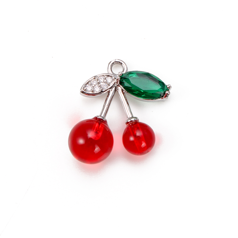 Crystal Hängen, Mässing, med Kristall & Akryl, Körsbär, plated, DIY & micro bana cubic zirconia, blandade färger, nickel, bly och kadmium gratis, 16.35x8.25x18.38mm, 20PC/Bag, Säljs av Bag