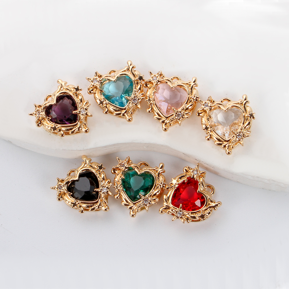 Crystal Hängen, Mässing, med Kristall, Hjärta, plated, DIY & micro bana cubic zirconia, fler färger för val, nickel, bly och kadmium gratis, 12.02x6.11x13.03mm, 20PC/Bag, Säljs av Bag