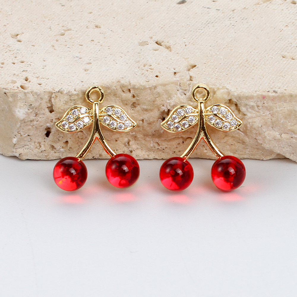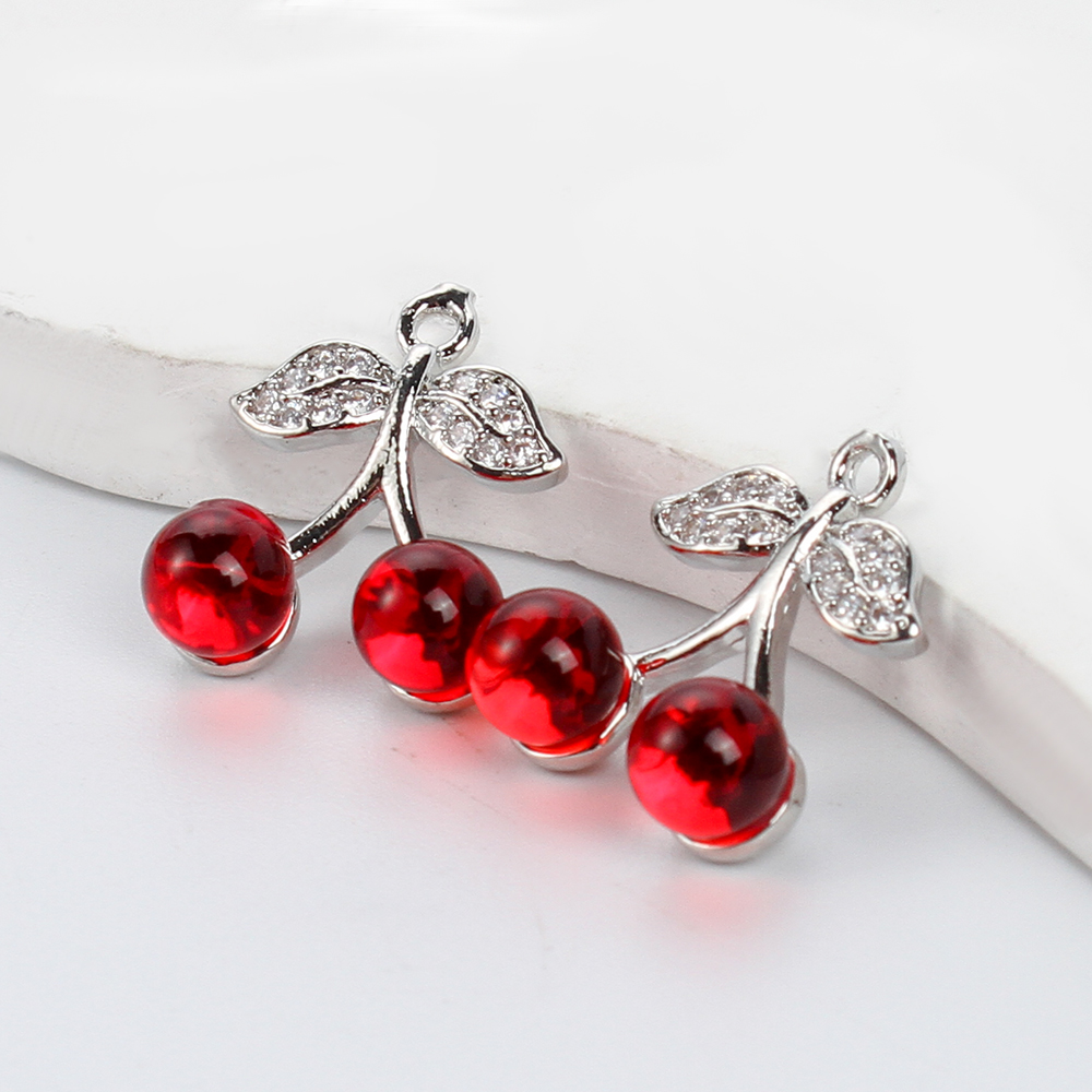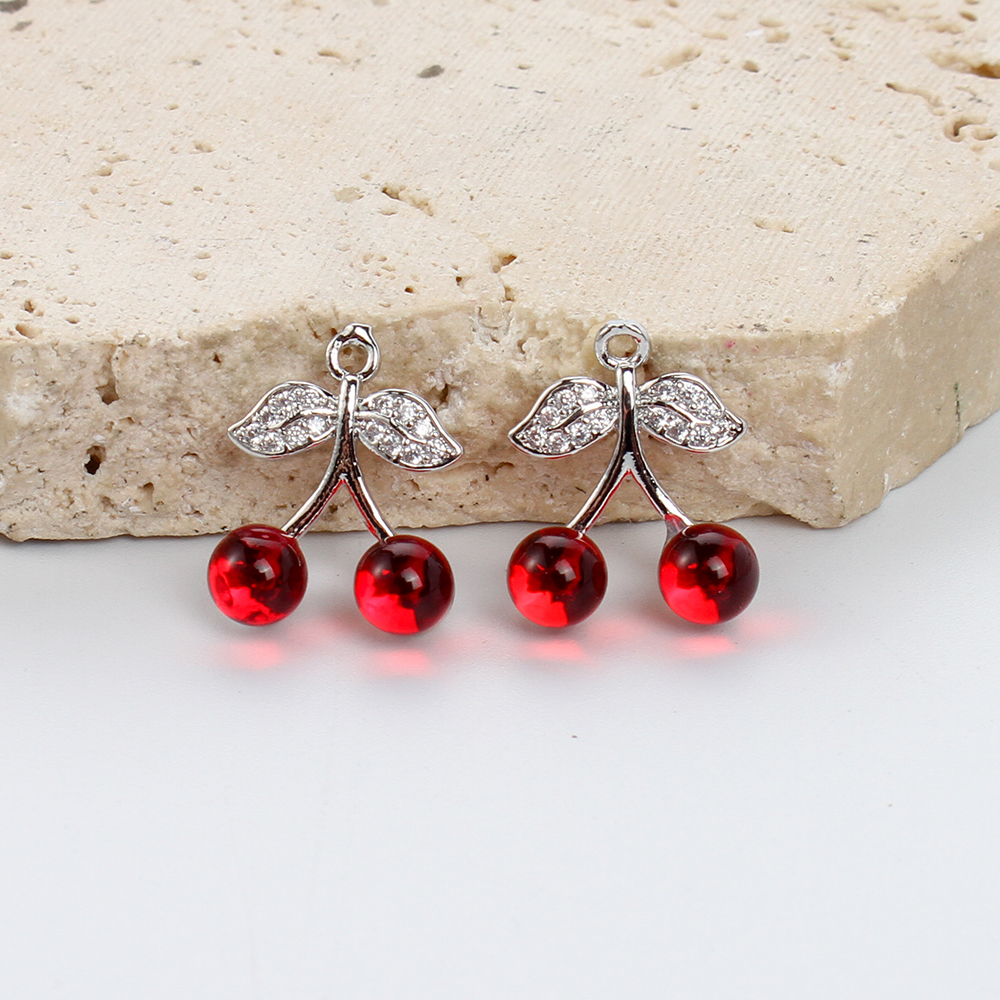 Crystal Hängen, Mässing, med Kristall, Körsbär, plated, DIY & micro bana cubic zirconia, fler färger för val, nickel, bly och kadmium gratis, 15.68x7.84x19.34mm, 20/Bag, Säljs av Bag