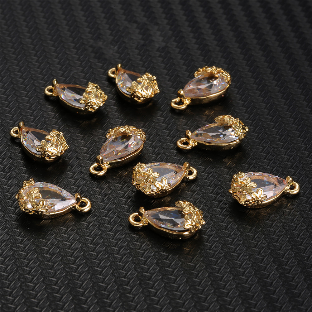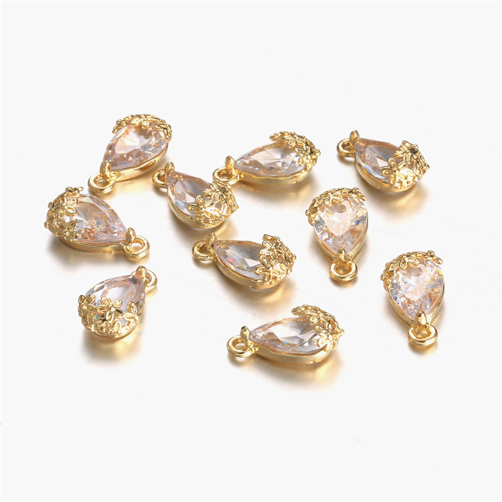 Crystal Hängen, Zink Alloy, med Kristall, Dropp, plated, DIY, gyllene, 50PC/Bag, Säljs av Bag