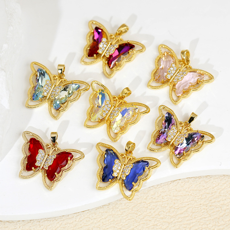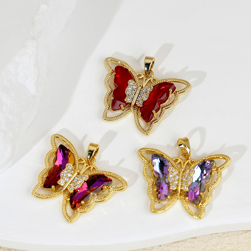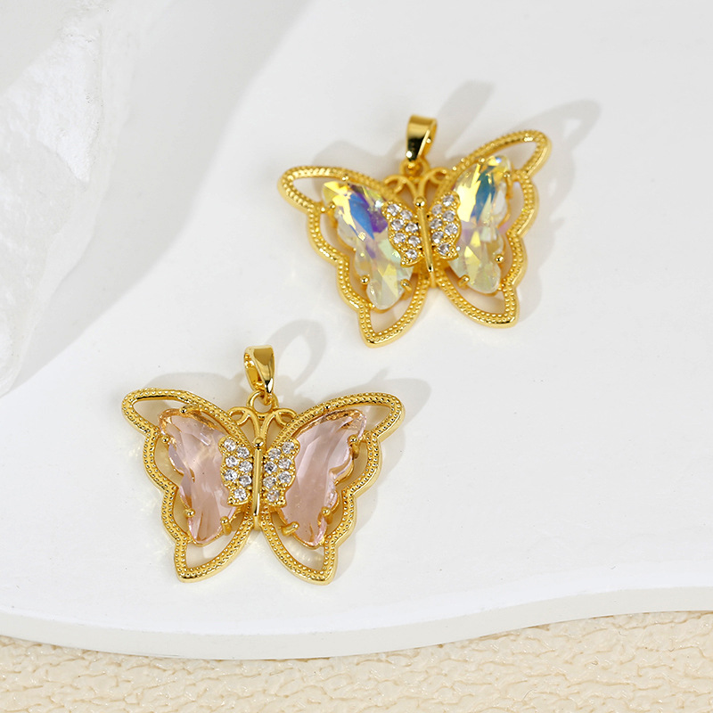 Crystal Hängen, Mässing, med Kristall, Fjäril, plated, DIY & micro bana cubic zirconia, fler färger för val, nickel, bly och kadmium gratis, Säljs av PC