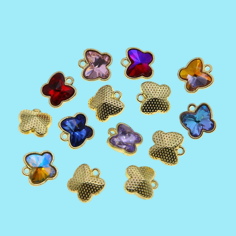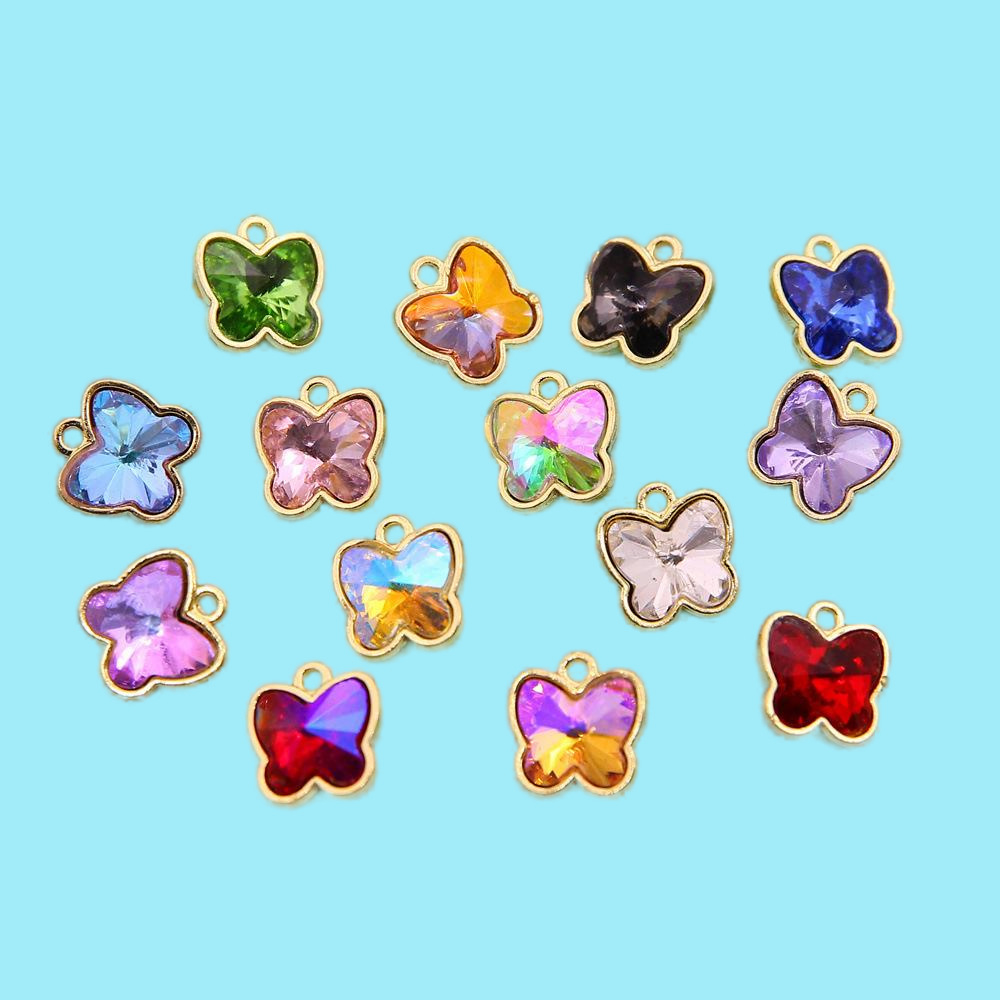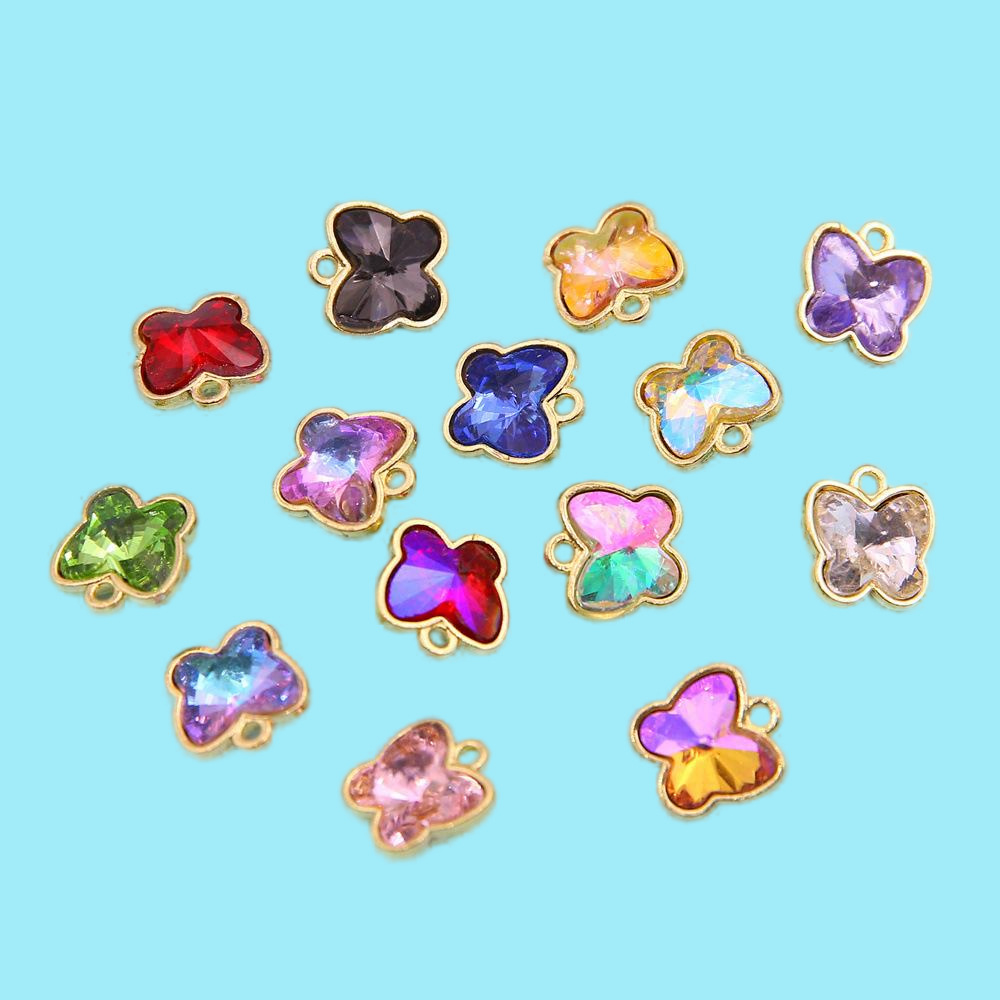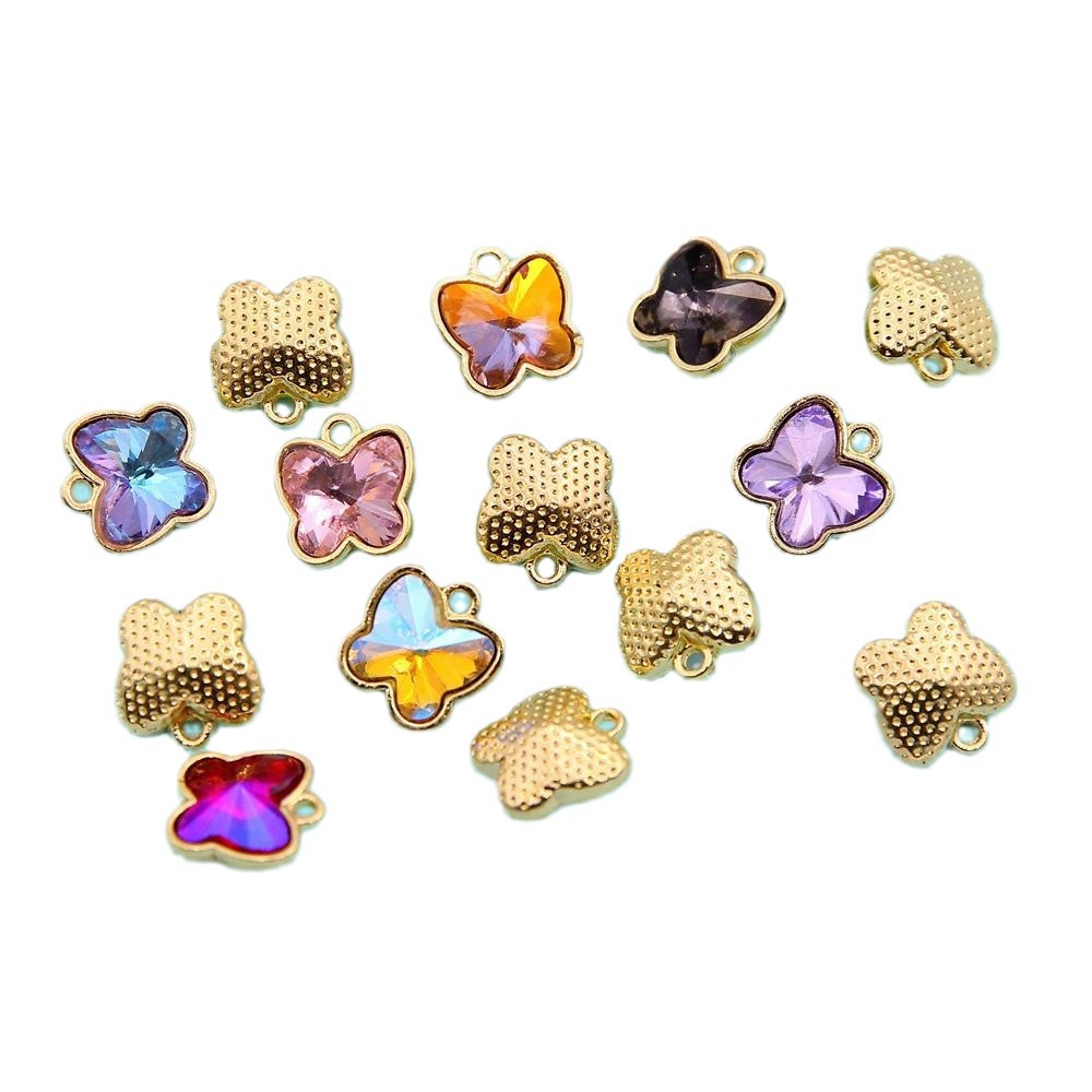 Crystal Hängen, Zink Alloy, med Kristall, Fjäril, guldfärg pläterade, slumpmässigt skickade & DIY, blandade färger, 13x12x7mm, 100PC/Bag, Säljs av Bag