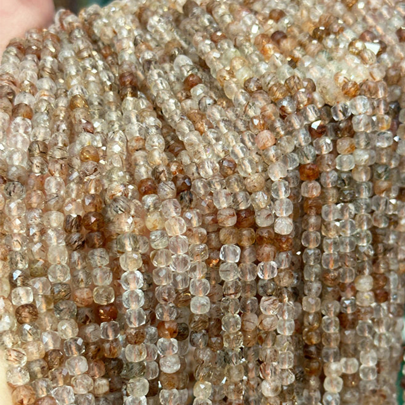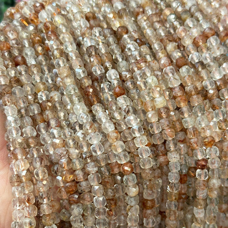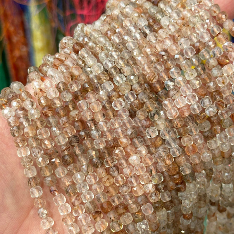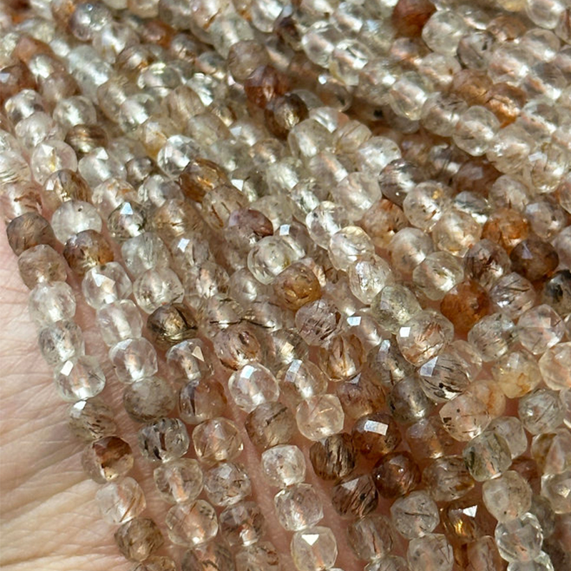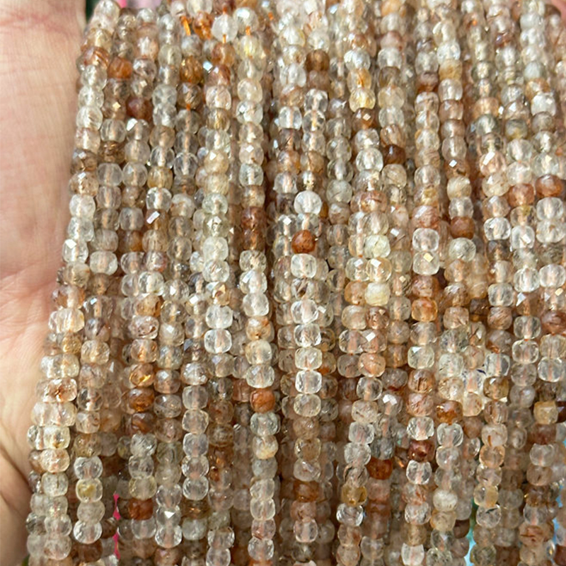Crystal Pärlor, Square, naturliga & DIY & fasetterad, beads size 4-4.5mm, Såld Per Ca 38 cm Strand