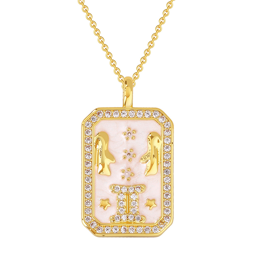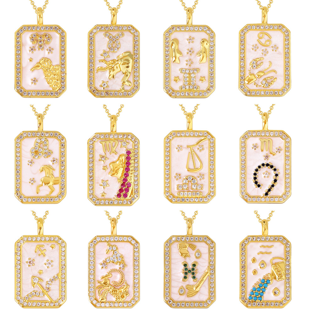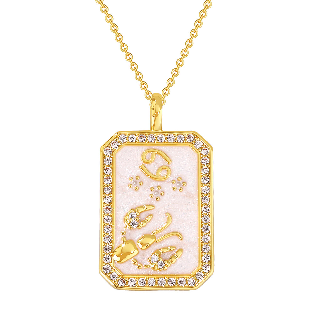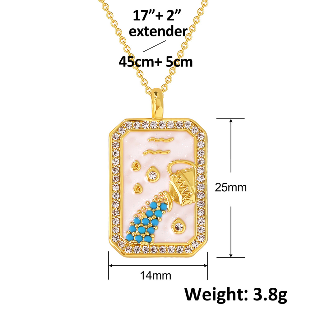 Cubic Zircon Micro Pave Mässing Halsband, med 5cm extender kedja, guldfärg pläterade, konstellation smycken & rolo kedja & olika stilar för val & micro bana cubic zirconia & för kvinna & epoxi klistermärke, fler färger för val, 14x25mm, Såld Per Ca 45 cm Strand