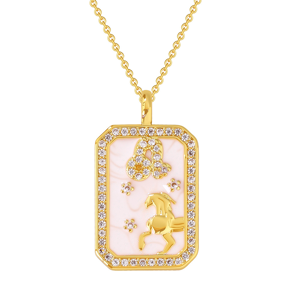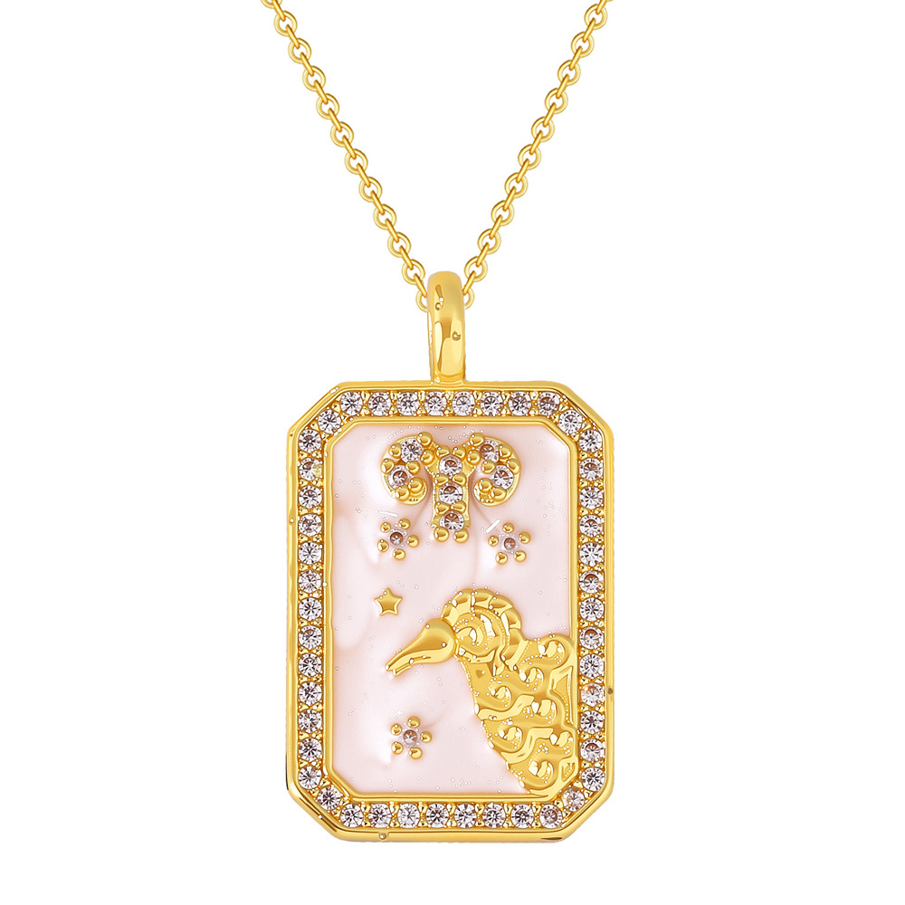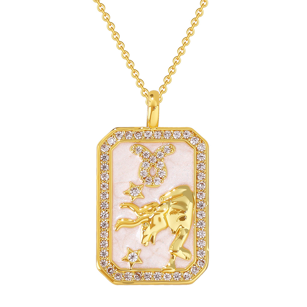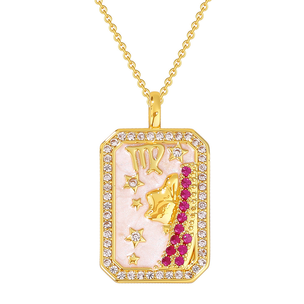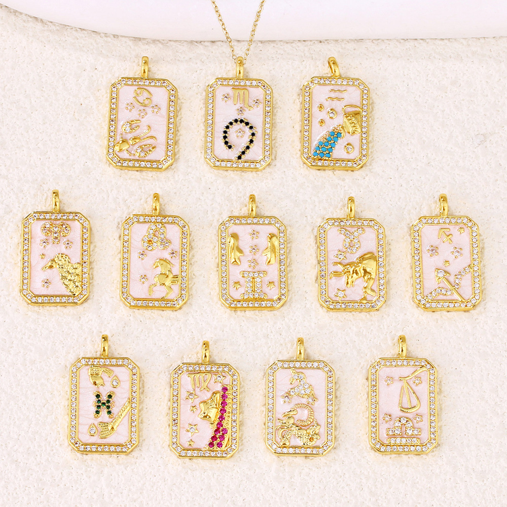 Cubic Zircon Micro Pave Mässing Halsband, med 5cm extender kedja, guldfärg pläterade, konstellation smycken & rolo kedja & olika stilar för val & micro bana cubic zirconia & för kvinna & epoxi klistermärke, fler färger för val, 14x25mm, Såld Per Ca 45 cm Strand