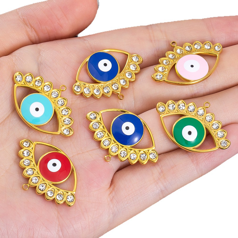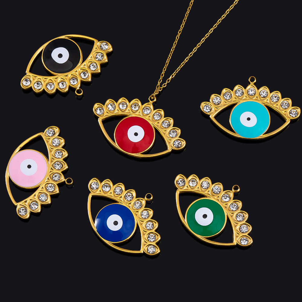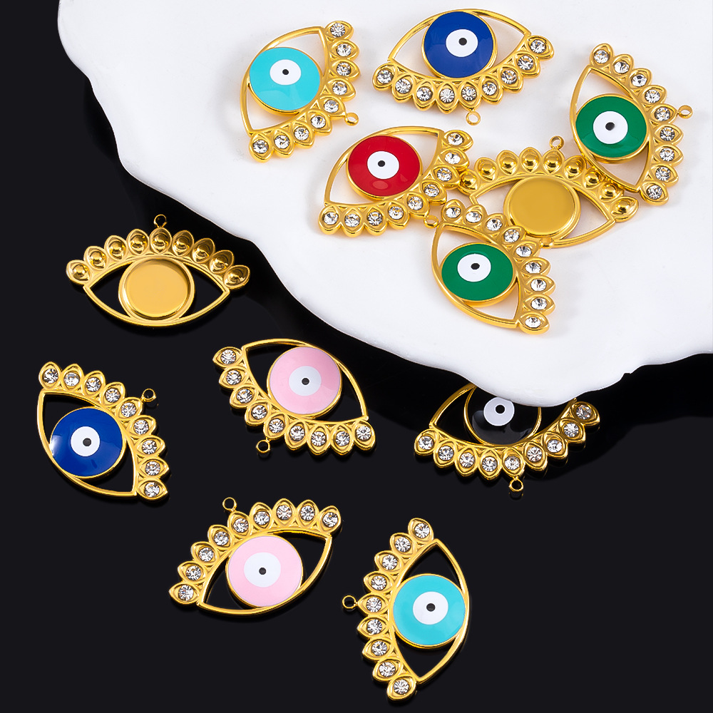 Evil Eye Hängen, 304 rostfritt stål, plated, DIY & emalj & med strass, fler färger för val, 10PC/Bag, Säljs av Bag