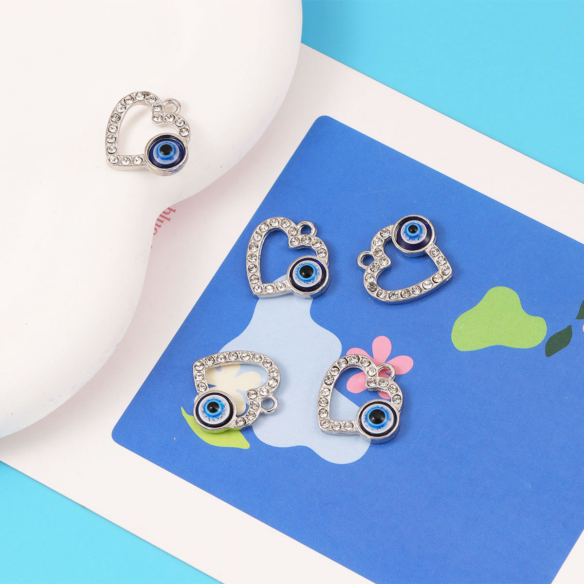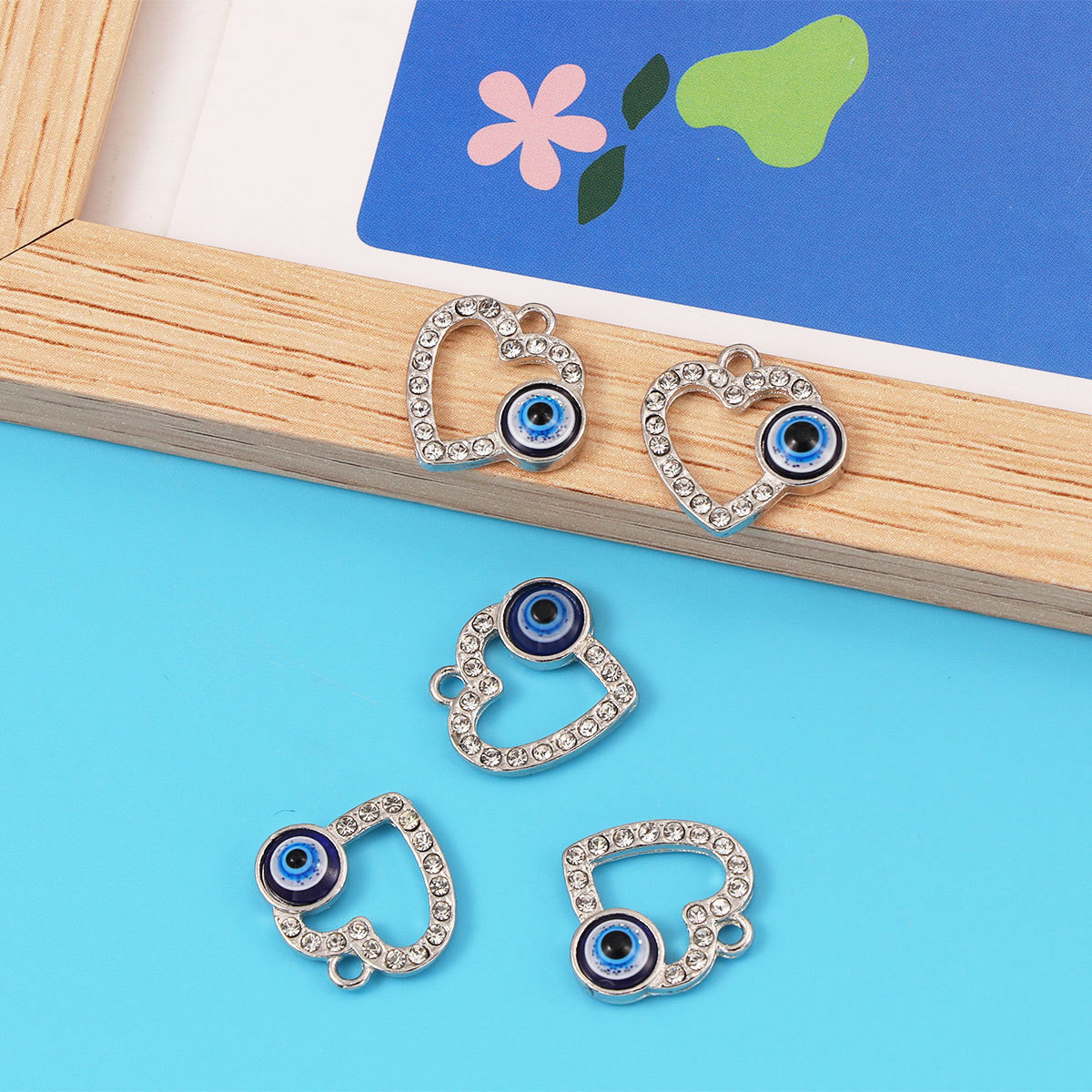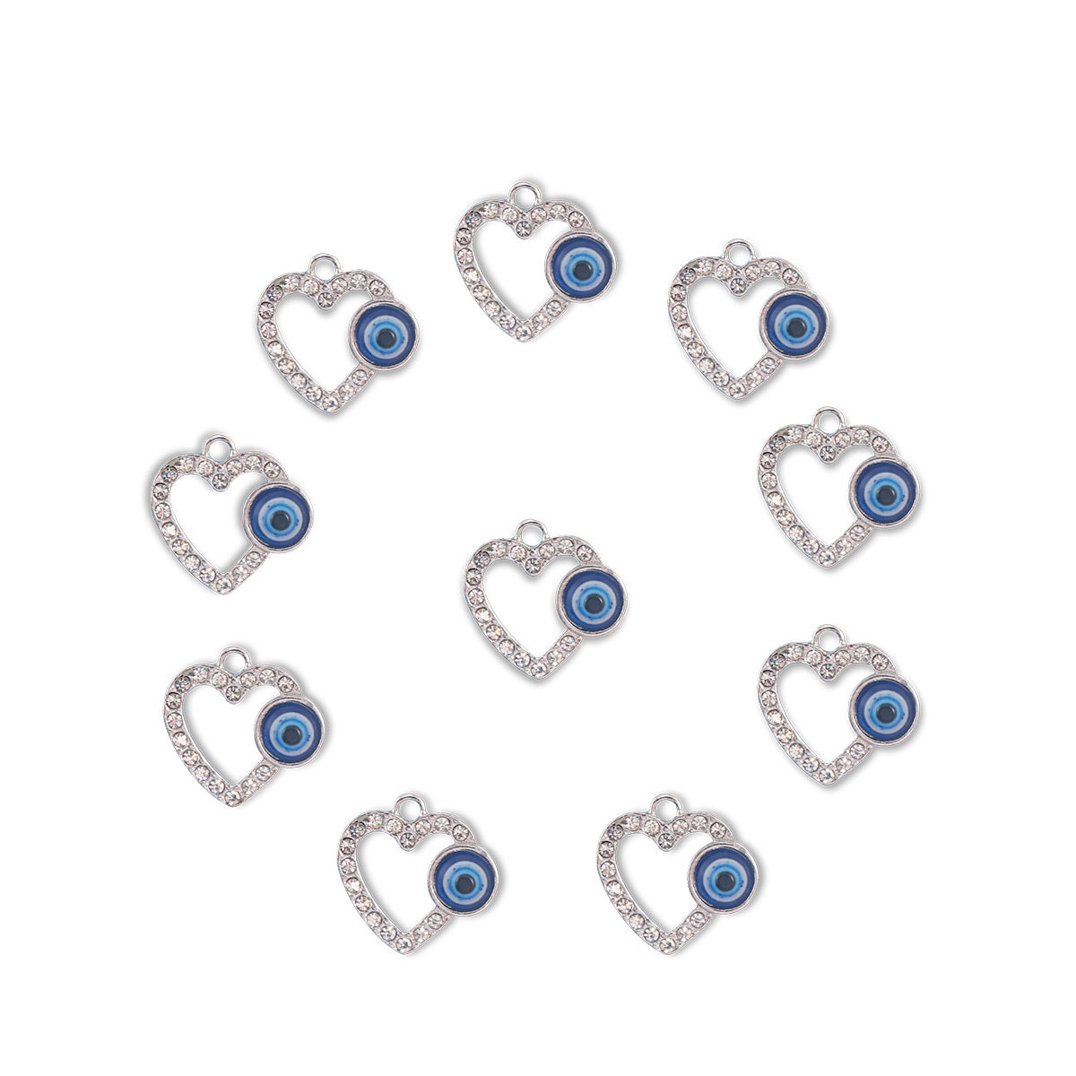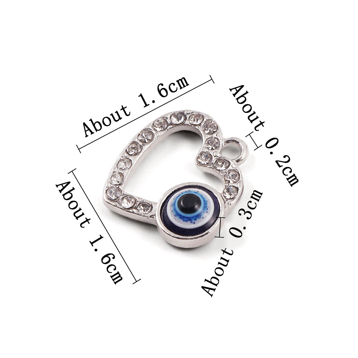 Evil Eye Hängen, Zink Alloy, med Harts, Hjärta, silver pläterad, DIY & med strass, blandade färger, 100PC/Bag, Säljs av Bag