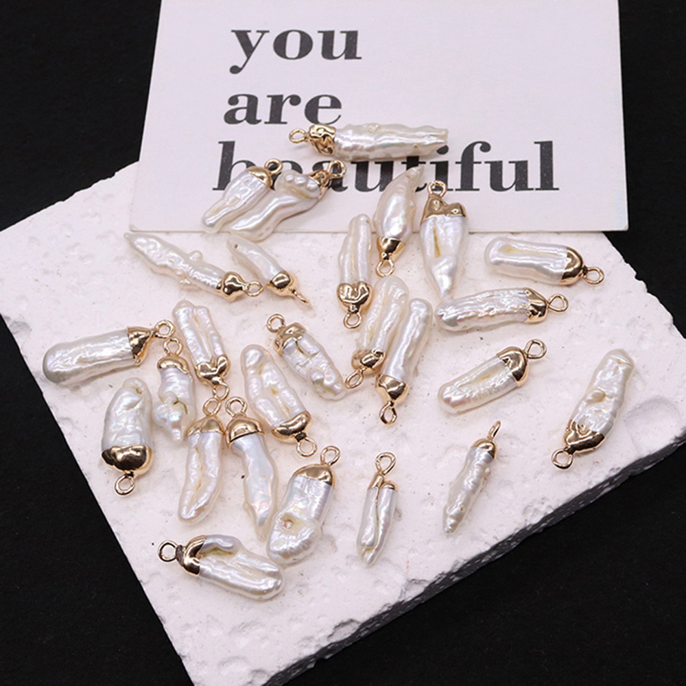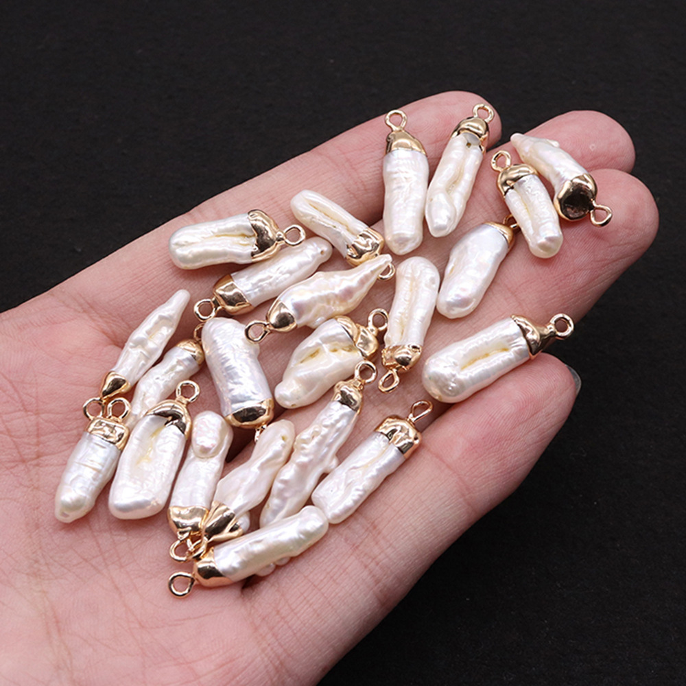 Freshwater Pearl Halsband, med Mässing, Oregelbunden, guldfärg pläterade, DIY, pendant length 7-30mm, Säljs av PC