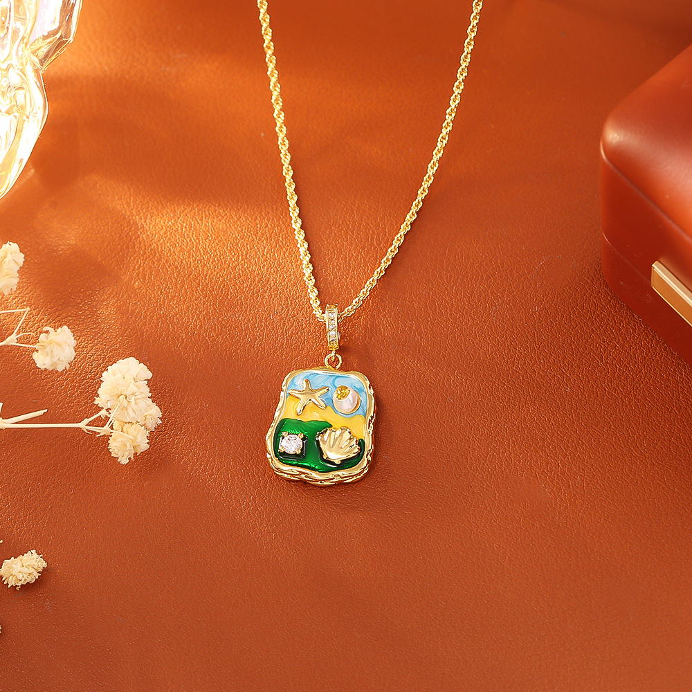 Freshwater Pearl Mässing Chain Necklace, med Freshwater Pearl, med 5.5cm extender kedja, 18K guldpläterad, olika stilar för val & micro bana cubic zirconia & för kvinna & emalj, The pendant is 3.5cm long and 1.6cm wide, Längd 46 cm, Säljs av PC