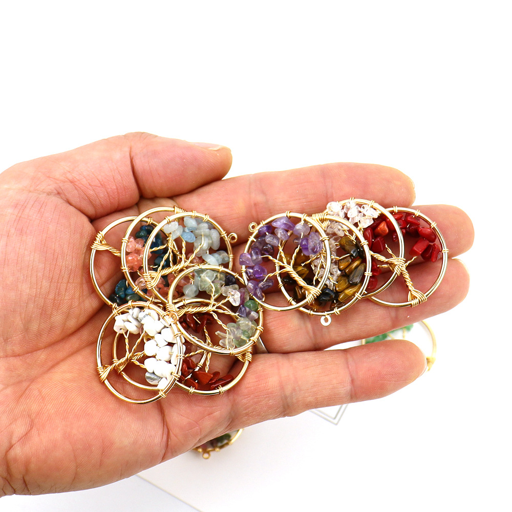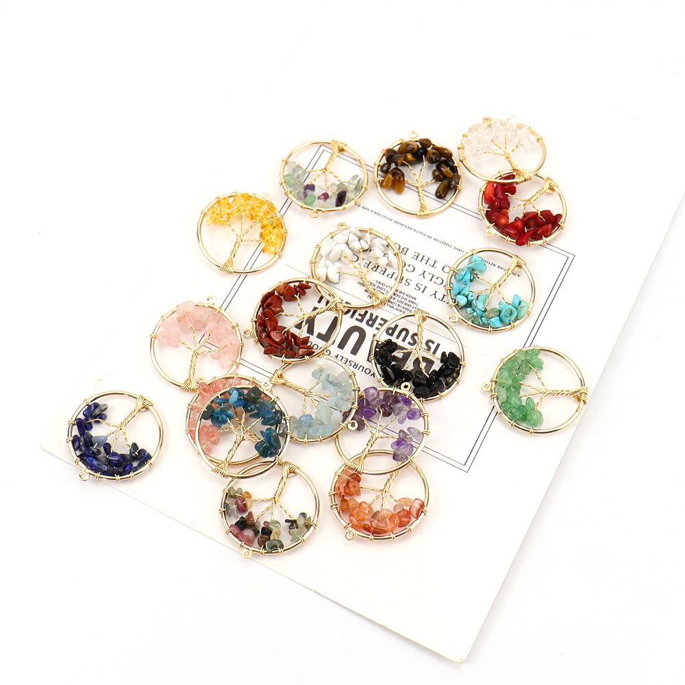 Gemstone Hängen Smycken, Ädelsten, med Zink Alloy, Livets träd, handgjord, DIY & olika material för val, 30mm, Säljs av PC