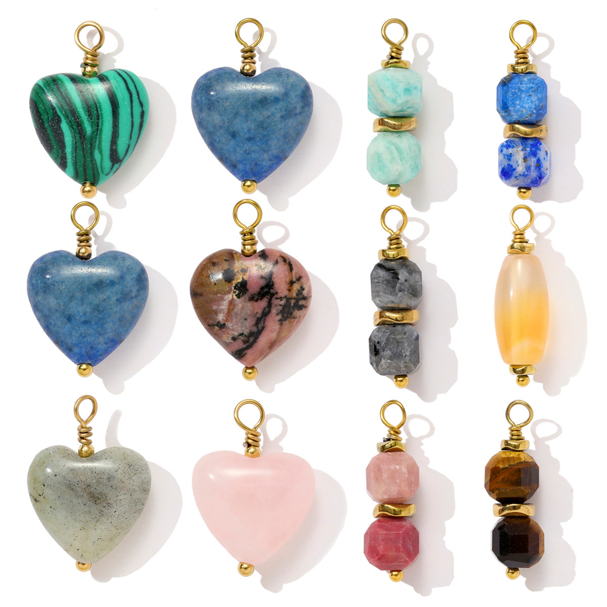 Gemstone Hängen Smycken, 304 rostfritt stål, med Natursten, guldfärg pläterade, DIY, fler färger för val, 3PC/Bag, Säljs av Bag