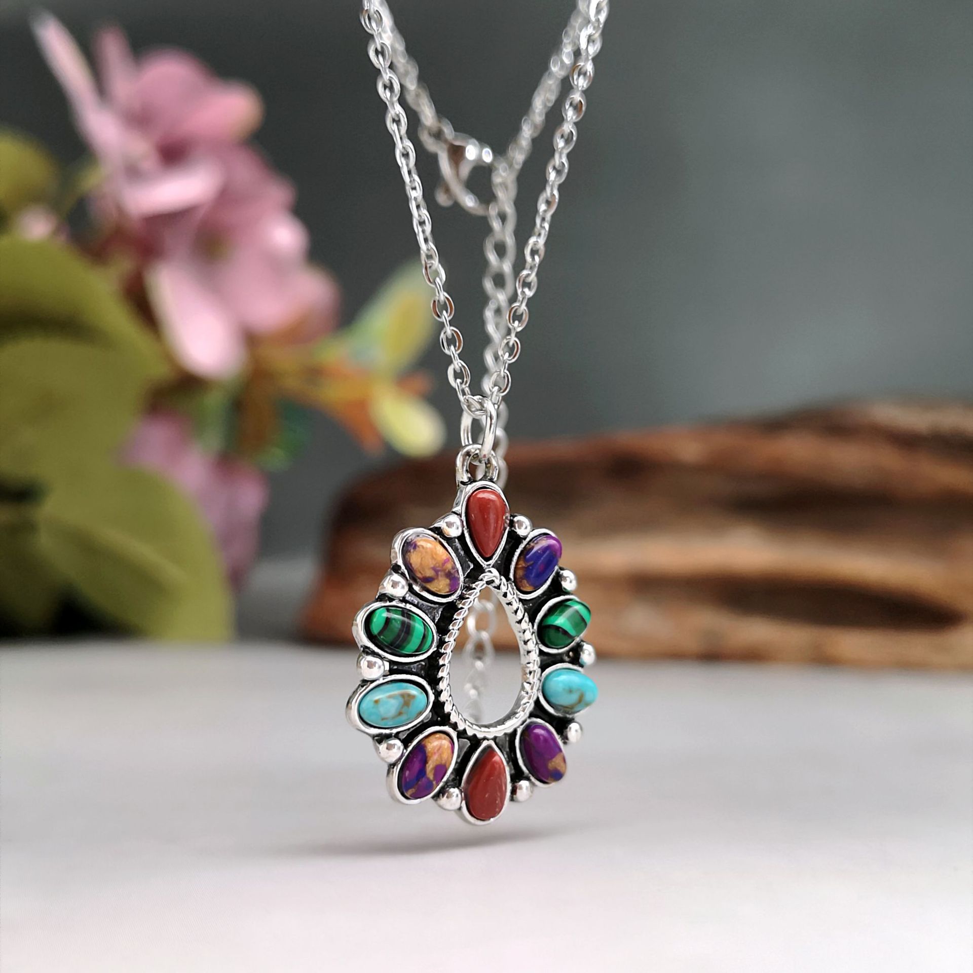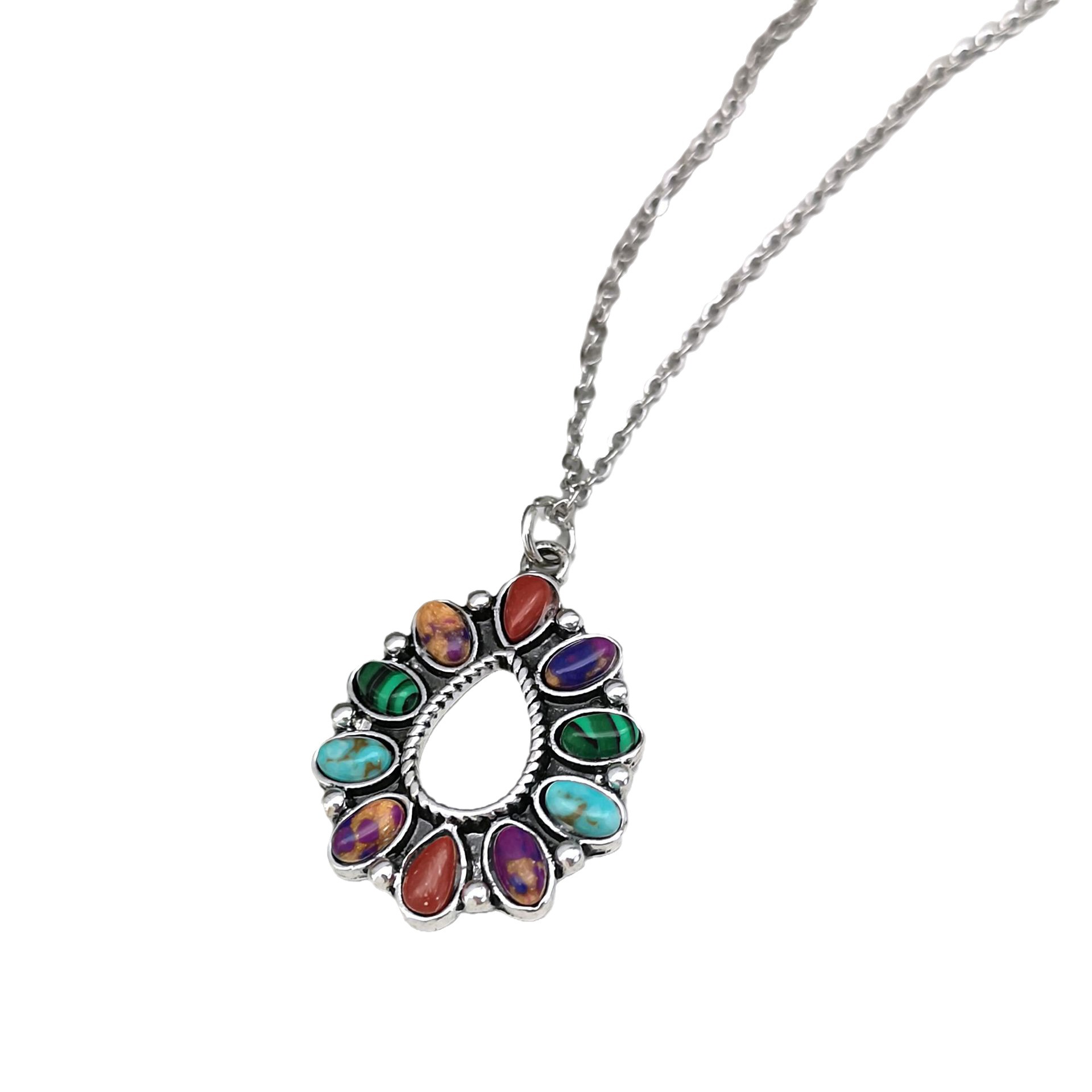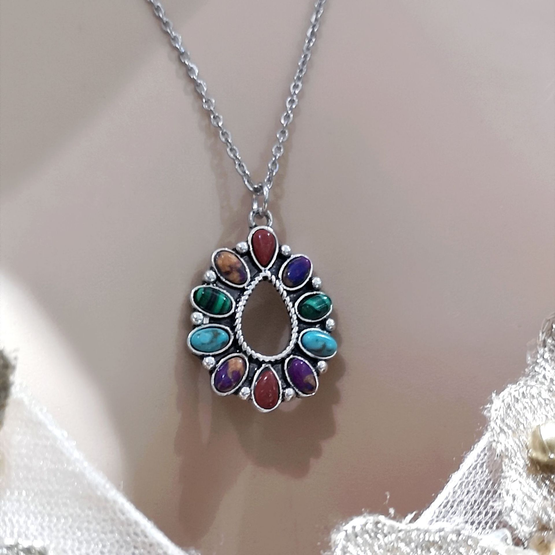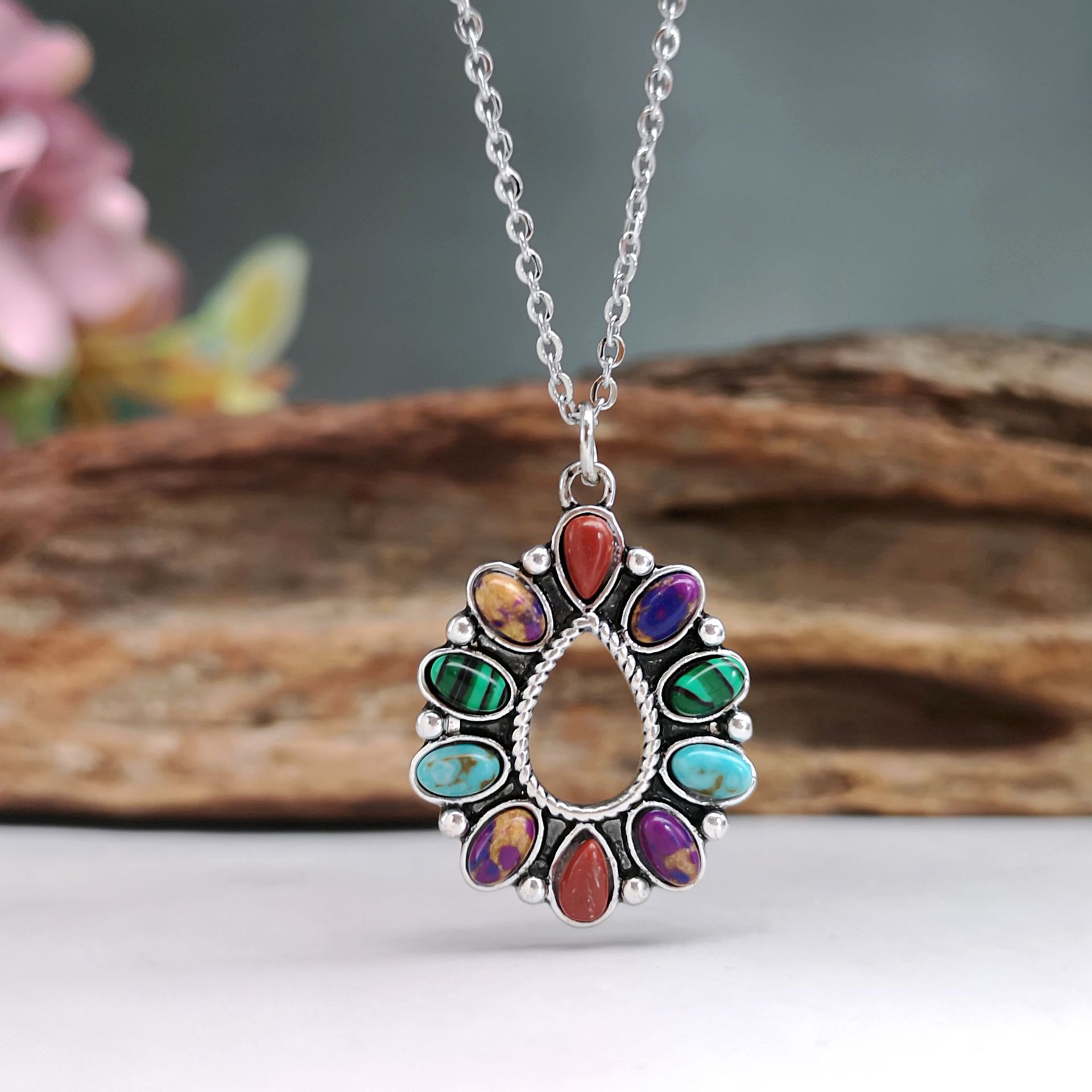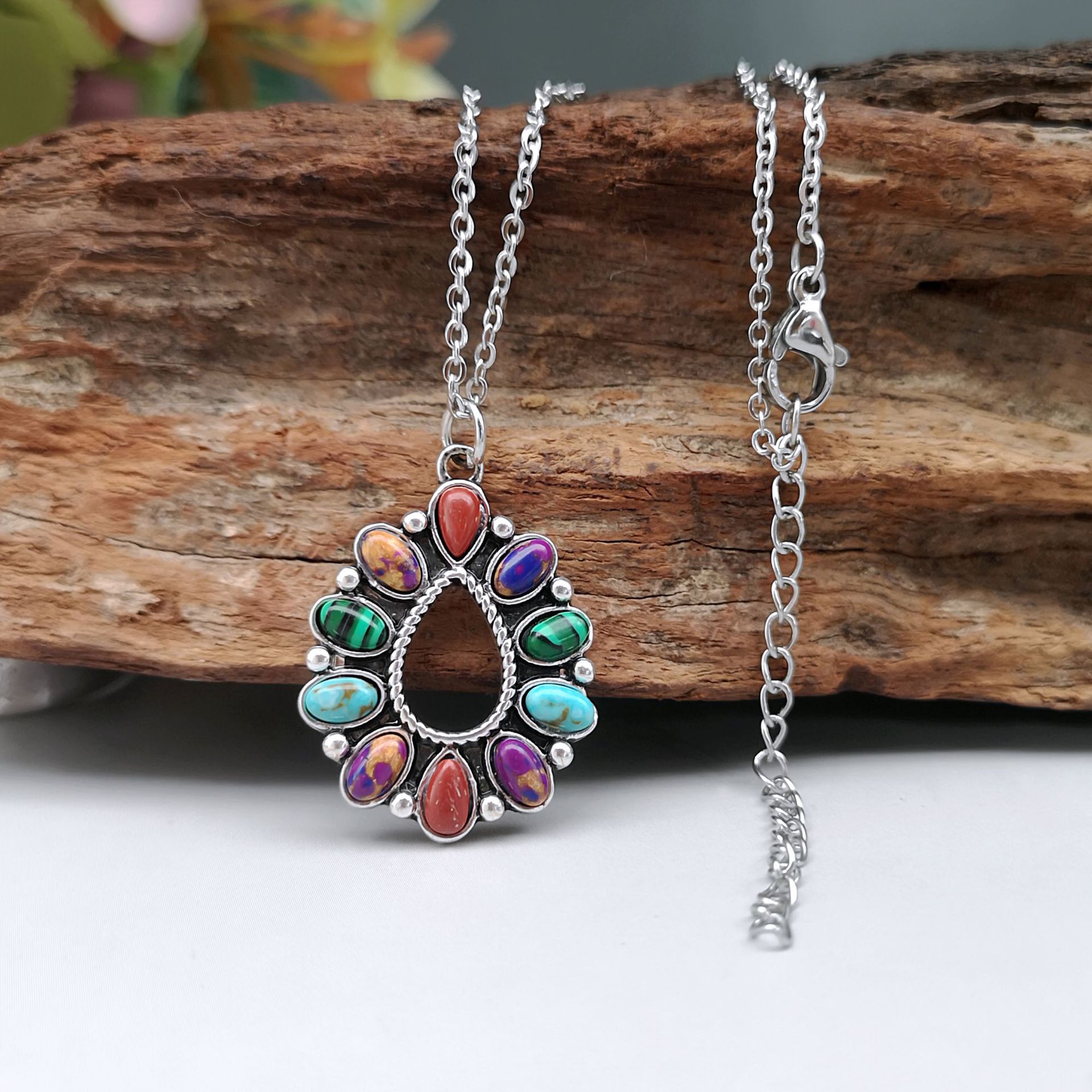 Gemstone smycken halsband, Zink Alloy, med Natursten, plated, mode smycken, blandade färger, 31x21mm, Längd 50 cm, Säljs av PC