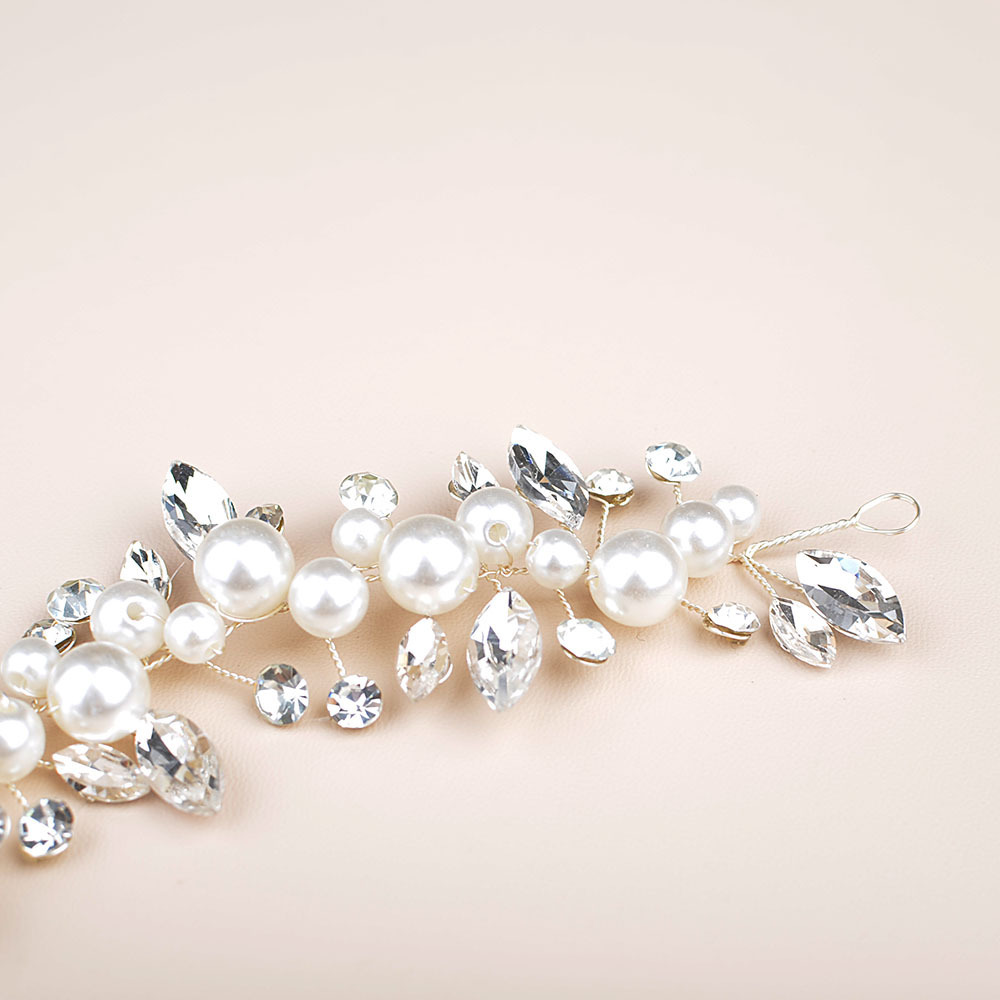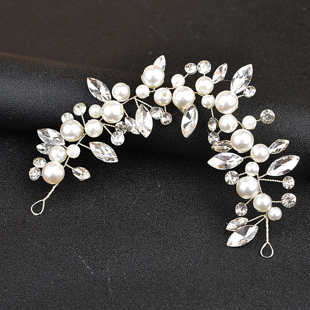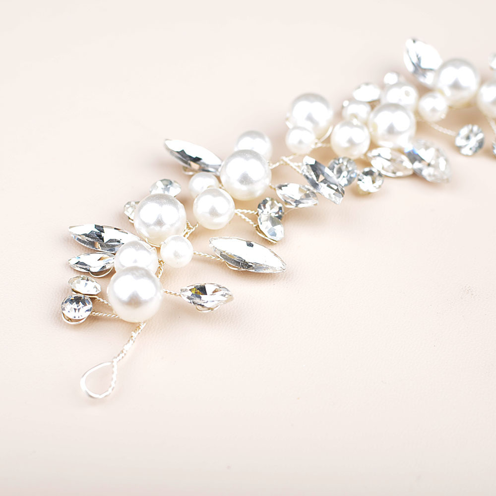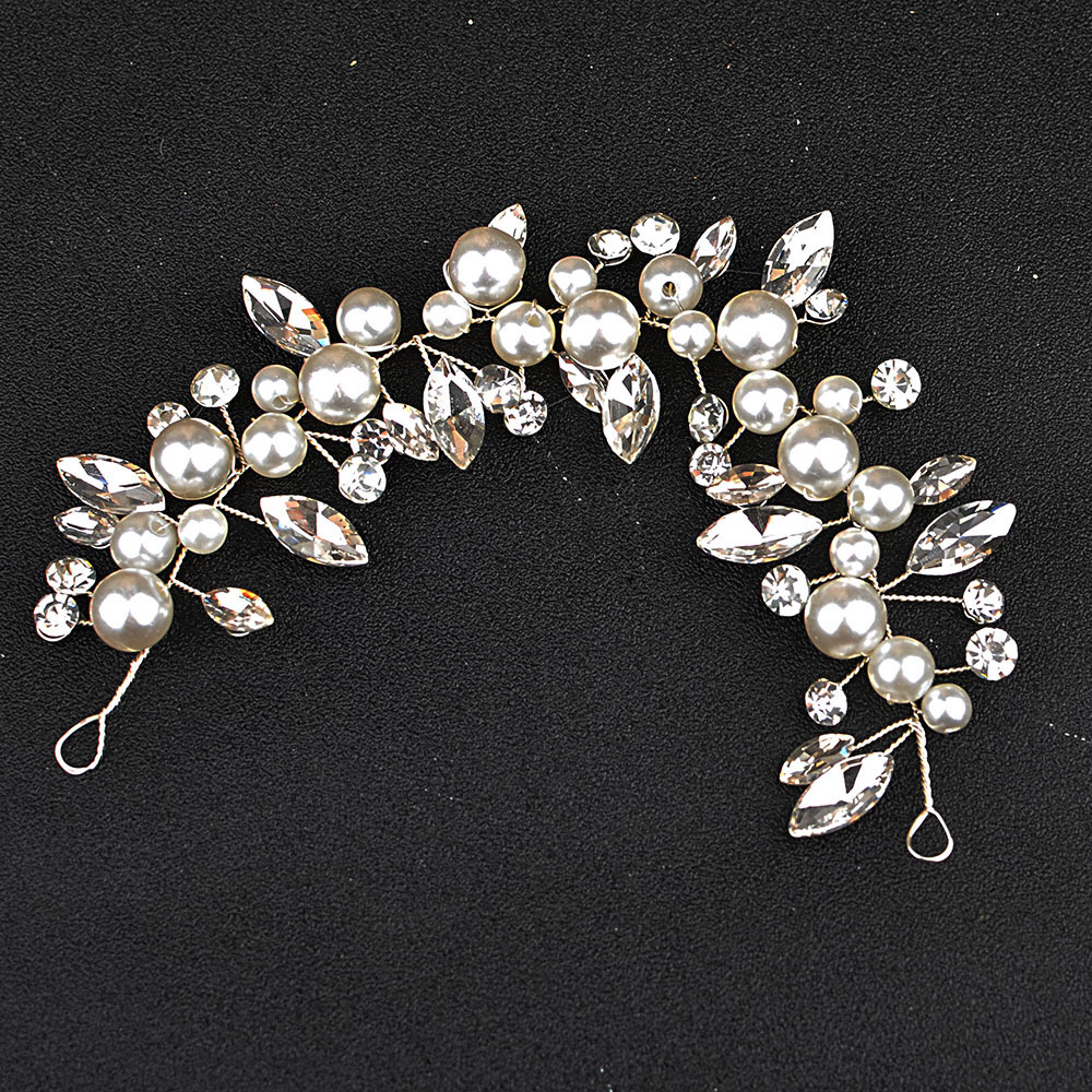 Hår Krans, Plast Pearl, med mässingstråd & STRASS, handgjord, mode smycken & för brud, fler färger för val, Längd Ca 18 cm, Säljs av PC