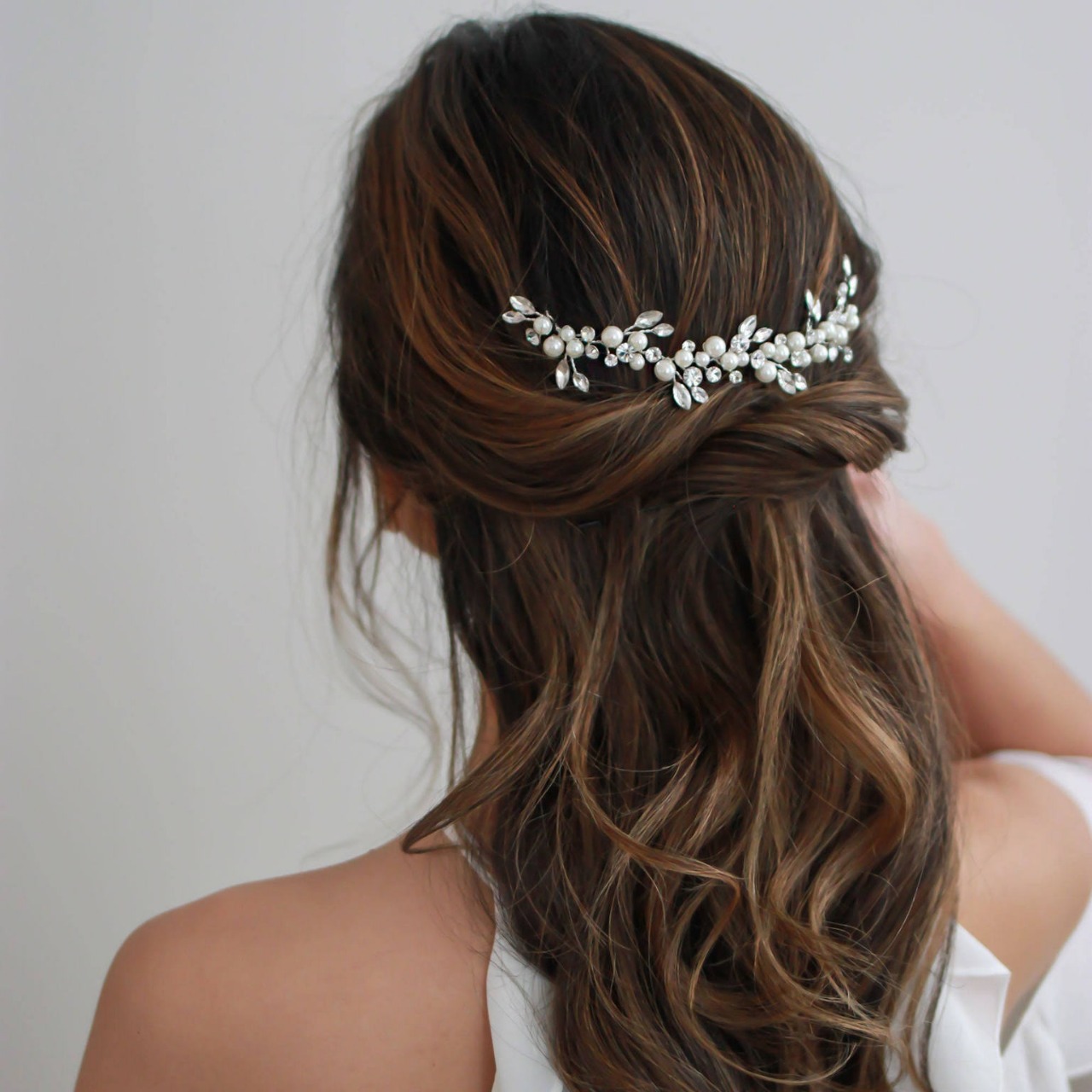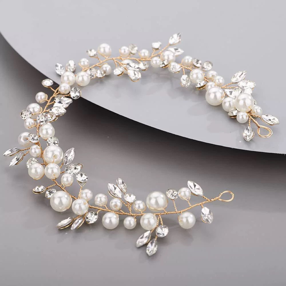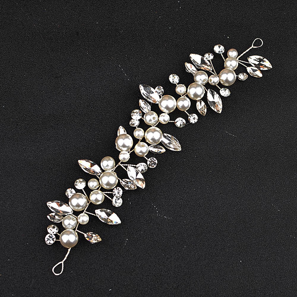 Hår Krans, Plast Pearl, med mässingstråd & STRASS, handgjord, mode smycken & för brud, fler färger för val, Längd Ca 18 cm, Säljs av PC
