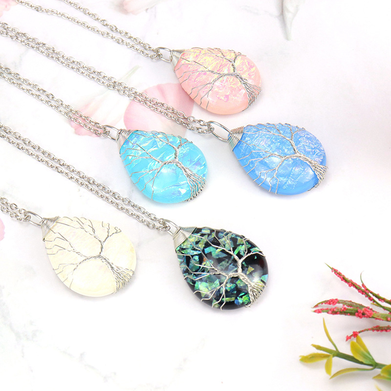 Harts Halsband, med Shell & Mässing, Livets träd, handgjord, för kvinna, fler färger för val, Säljs av PC