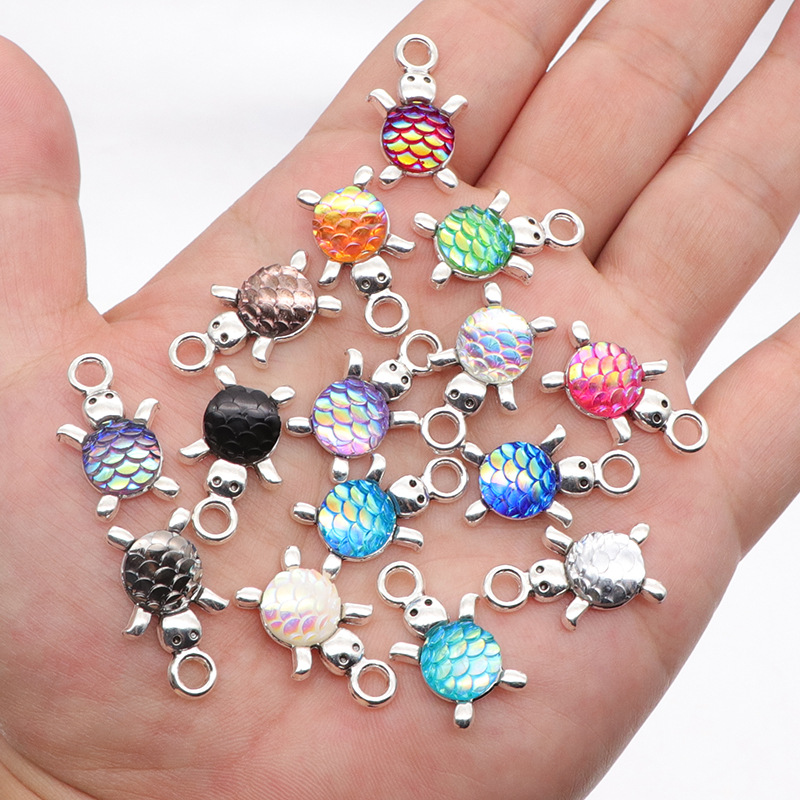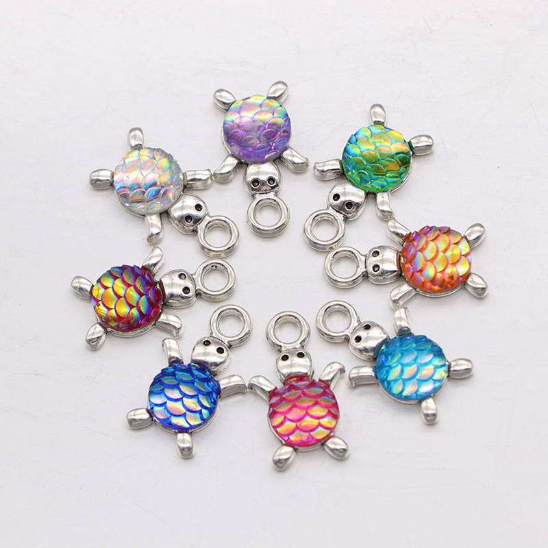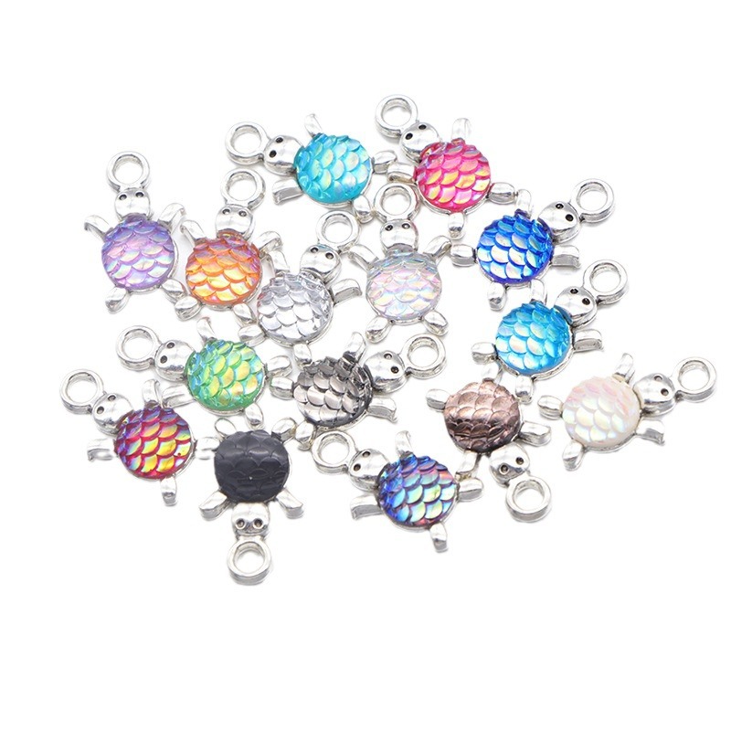 Harts Pendant, Zink Alloy, med Harts, Sköldpadda, silver pläterad, DIY, fler färger för val, 10mm, 100/Bag, Säljs av Bag