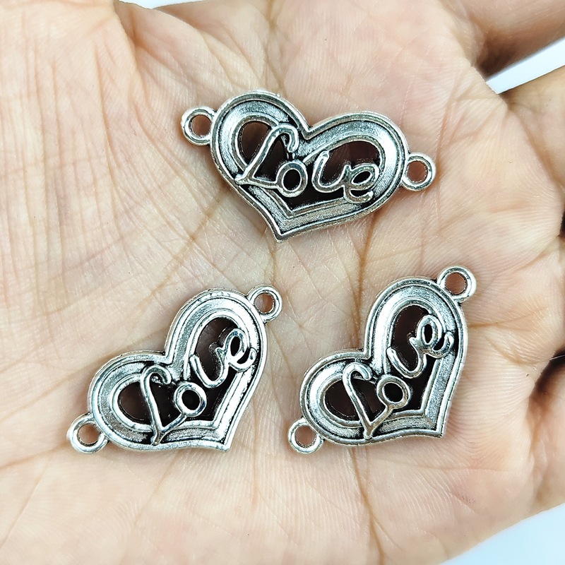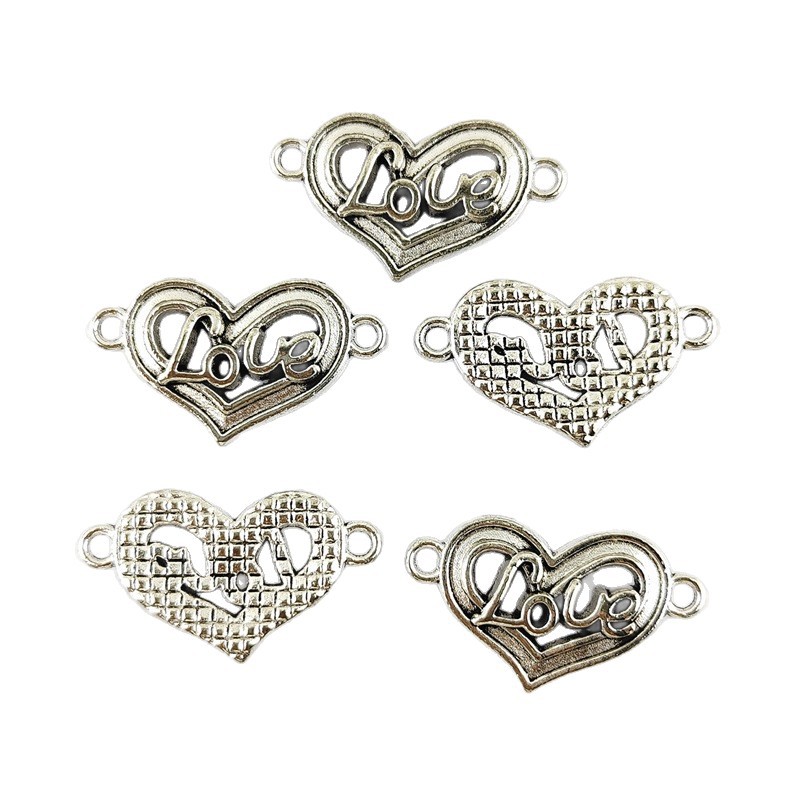 Hjärta Zink Alloy Connector, silver pläterad, DIY & ihålig, 17x29mm, 100PC/Bag, Säljs av Bag