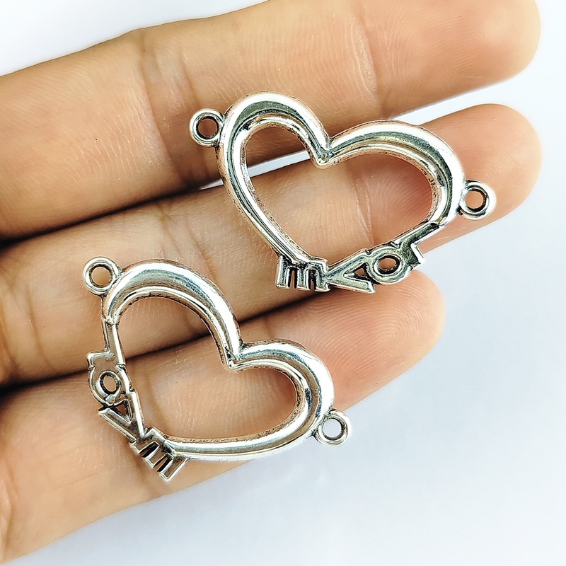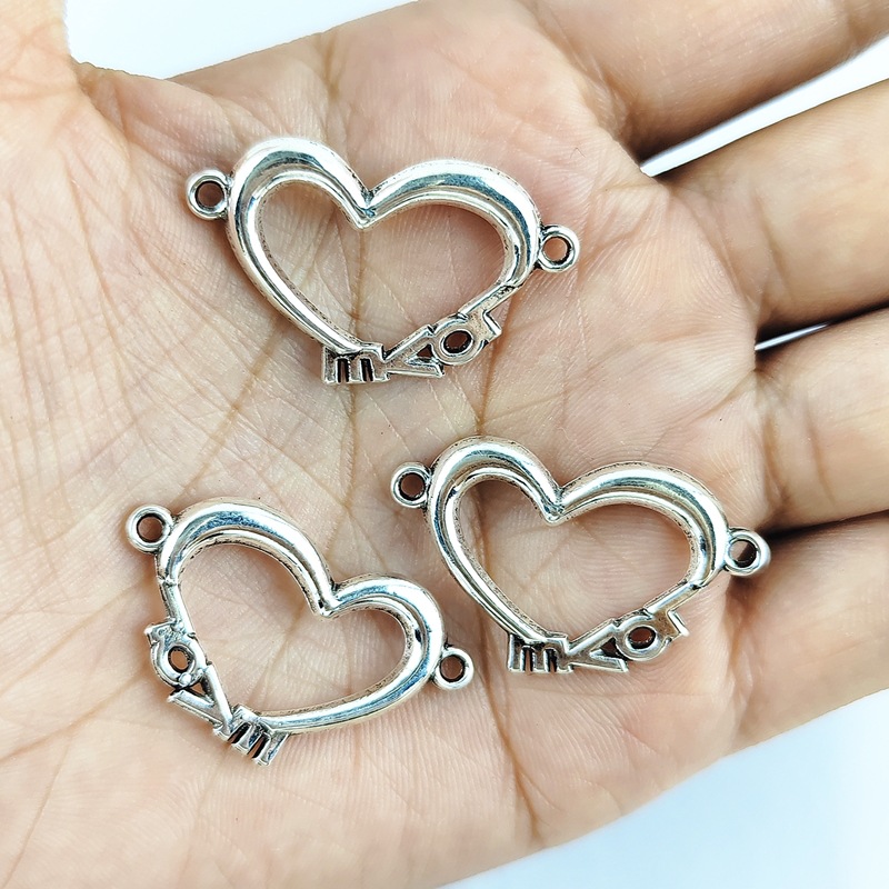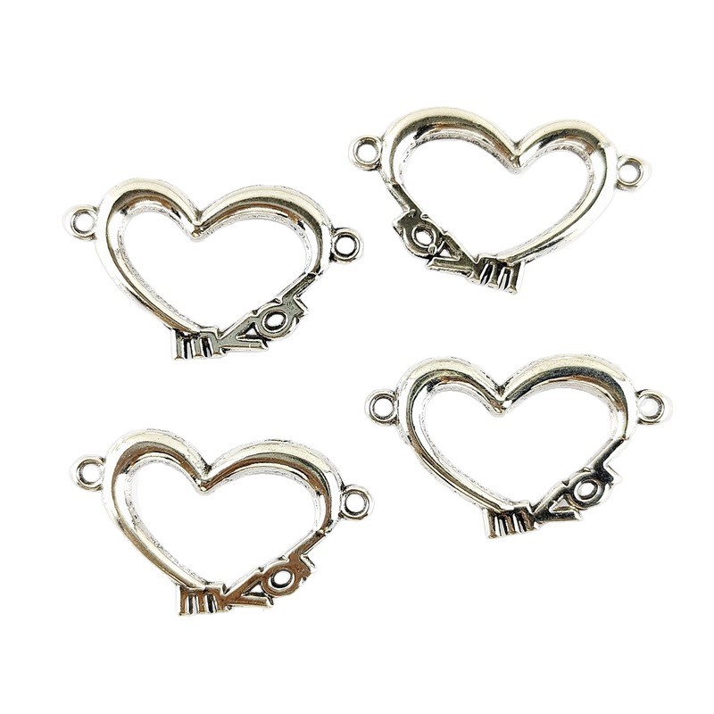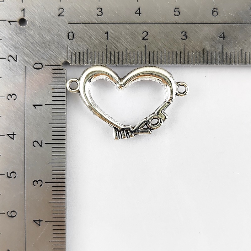 Hjärta Zink Alloy Connector, silver pläterad, DIY & ihålig, 19x32mm, 100PC/Bag, Säljs av Bag