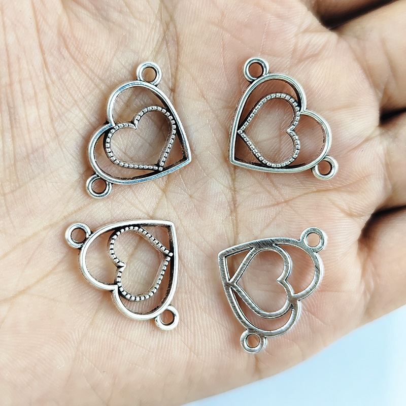 Hjärta Zink Alloy Connector, silver pläterad, DIY & ihålig, 16x23mm, 100PC/Bag, Säljs av Bag