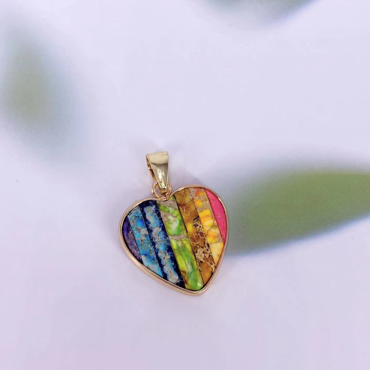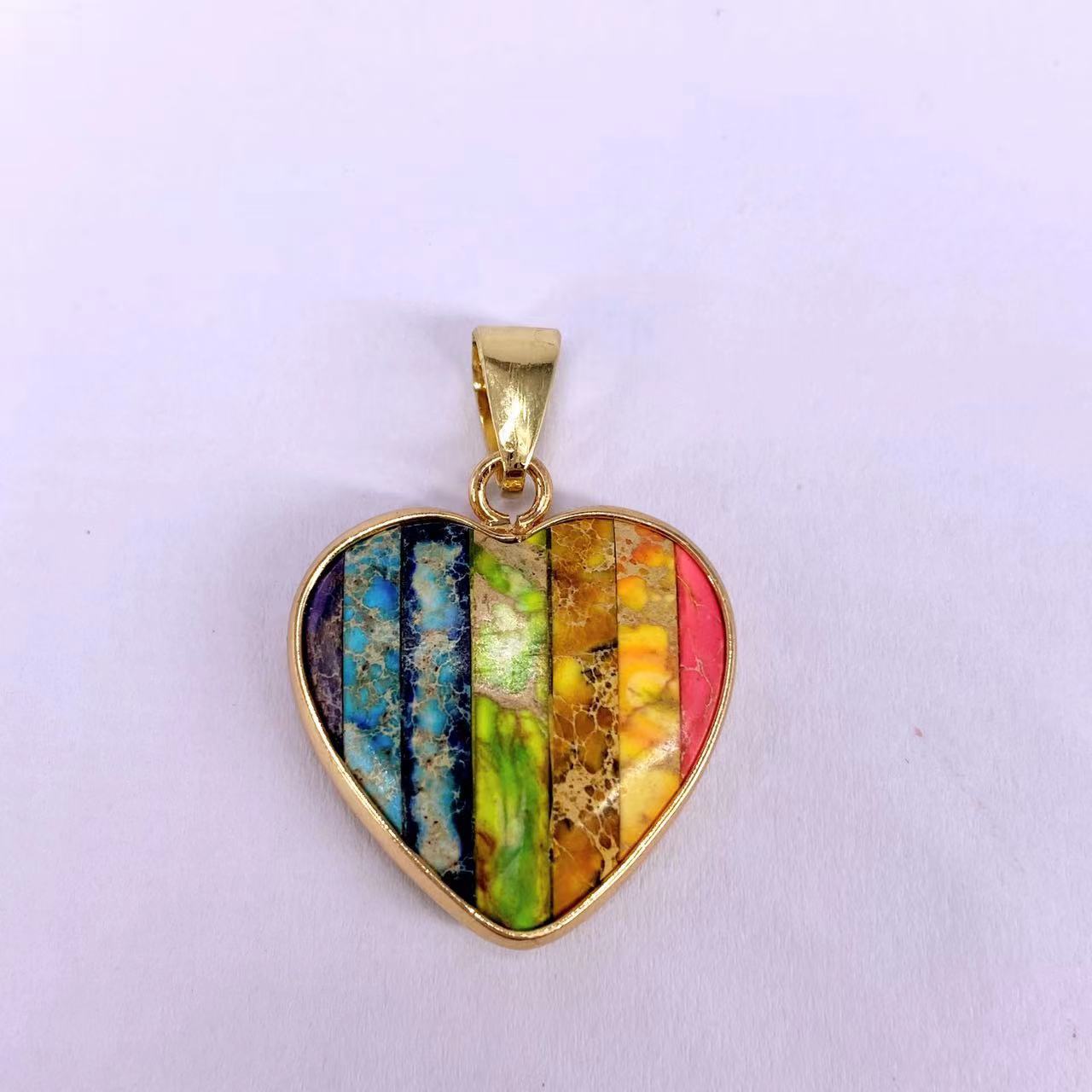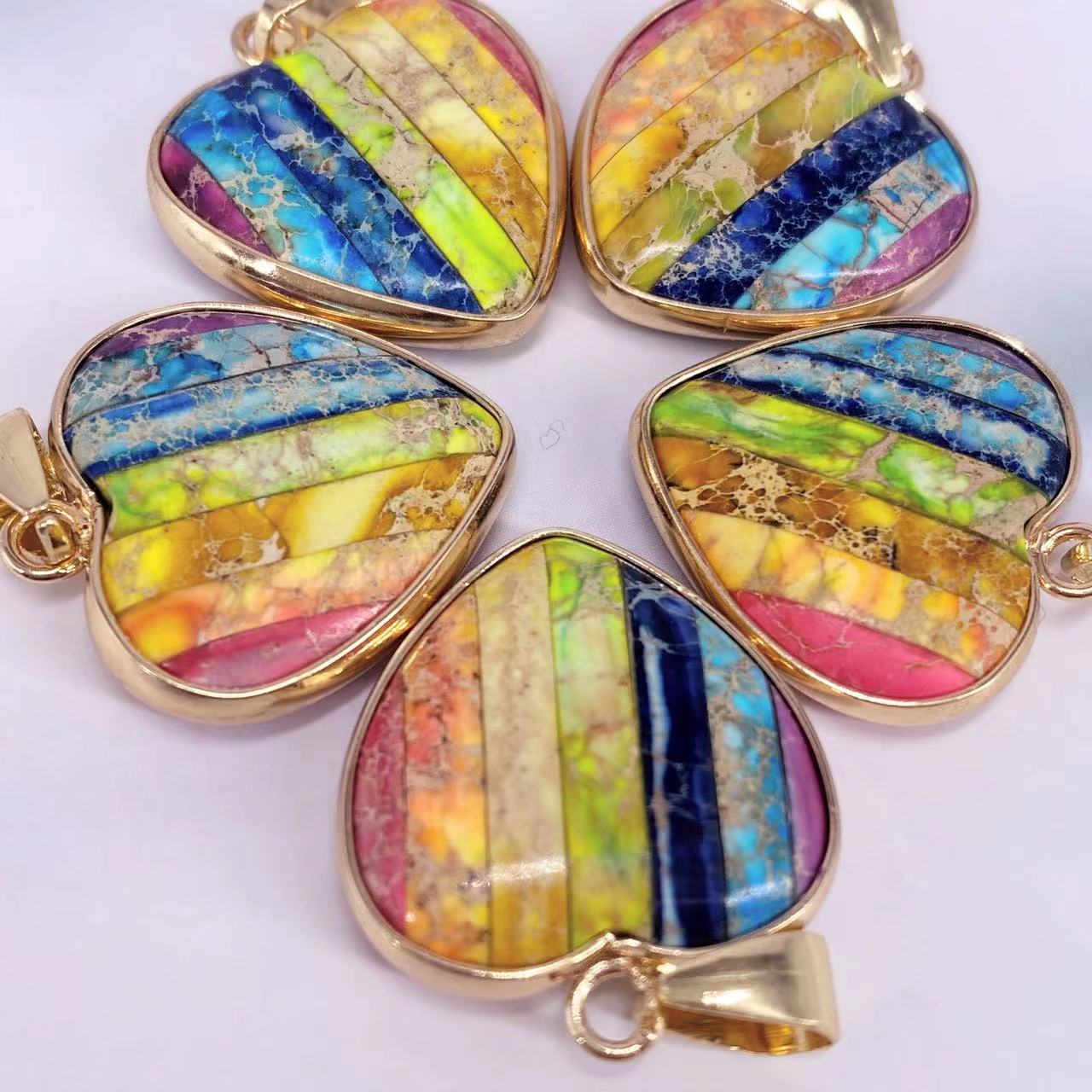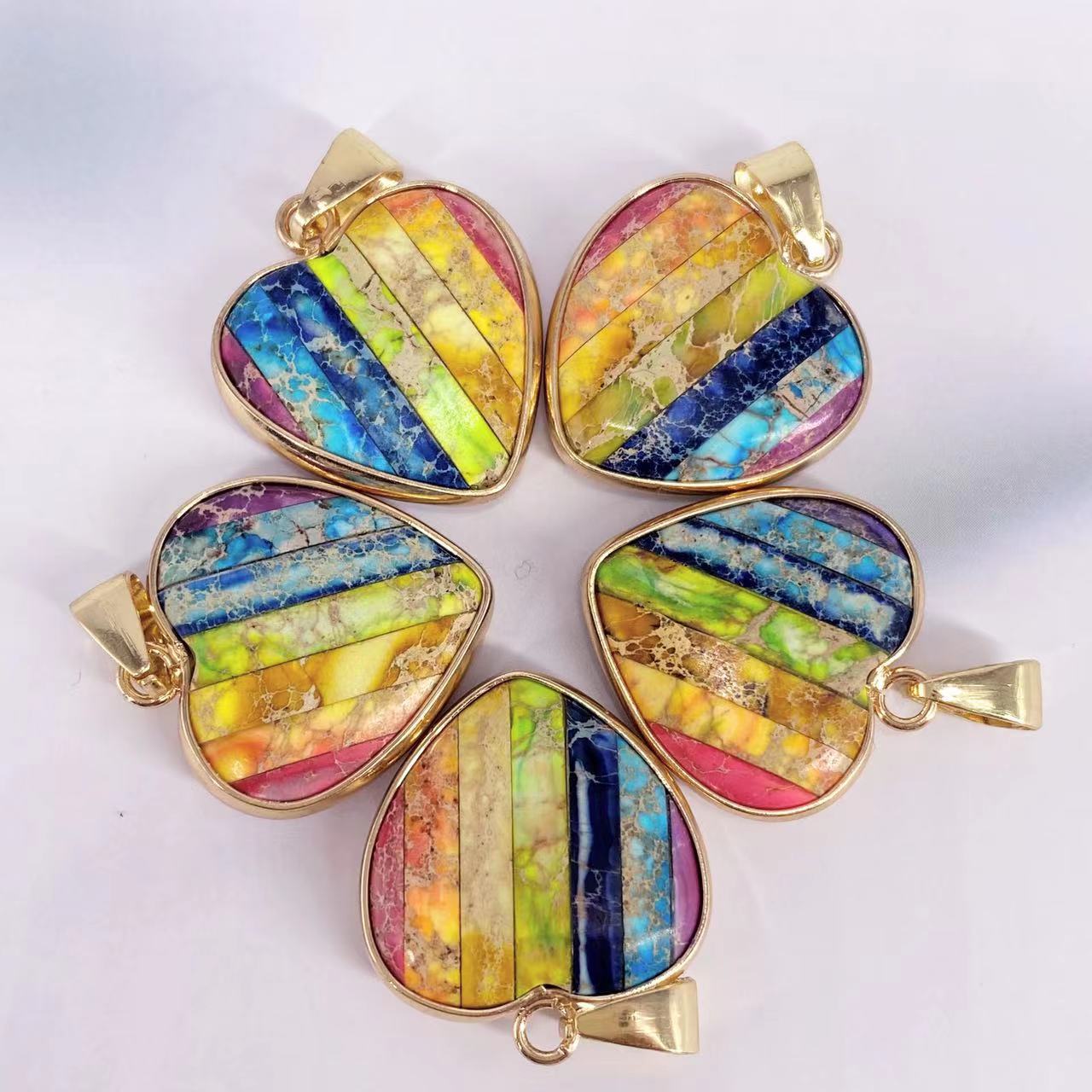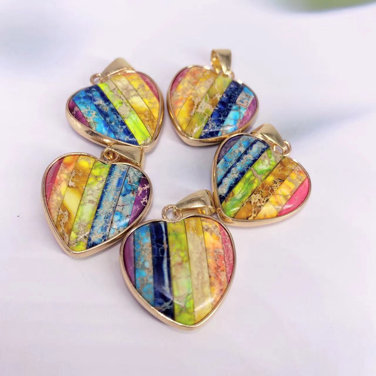 Imperial Jasper Hängen, Impression Jasper, med Mässing, Hjärta, guldfärg pläterade, DIY, flerfärgad, 22x24mm, Säljs av PC