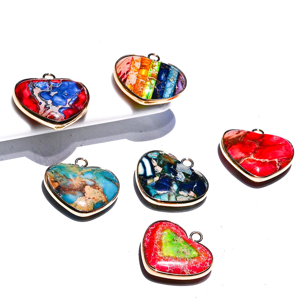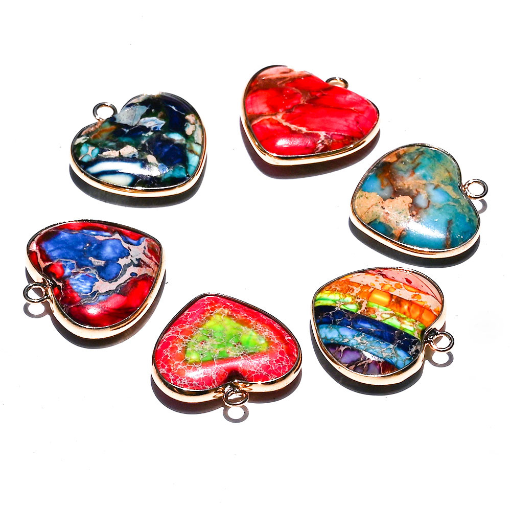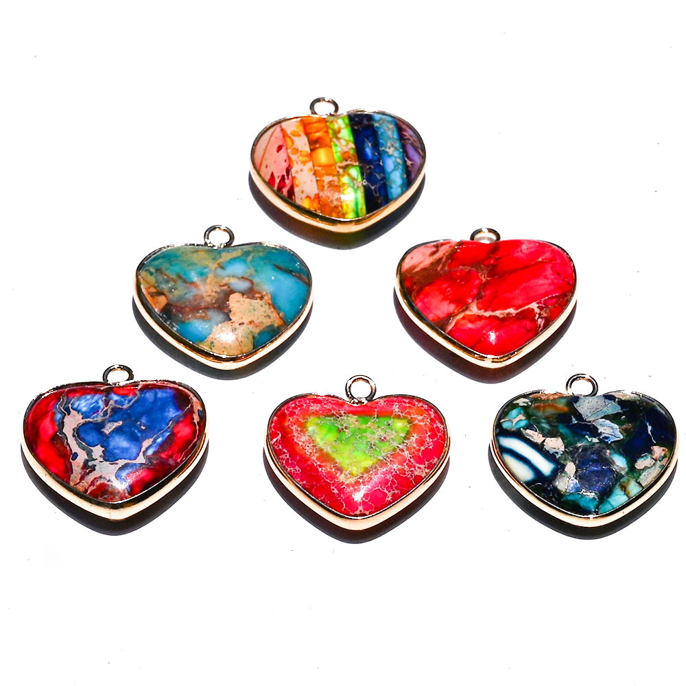 Imperial Jasper Hängen, Impression Jasper, med Zink Alloy, Hjärta, guldfärg pläterade, DIY, fler färger för val, 24x25x6mm, Säljs av PC
