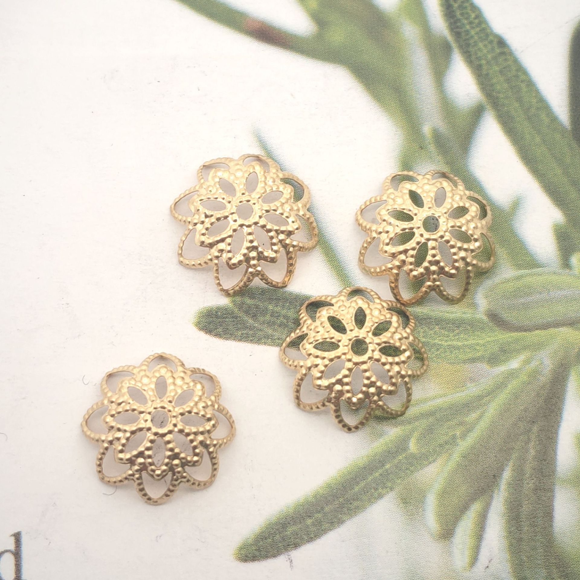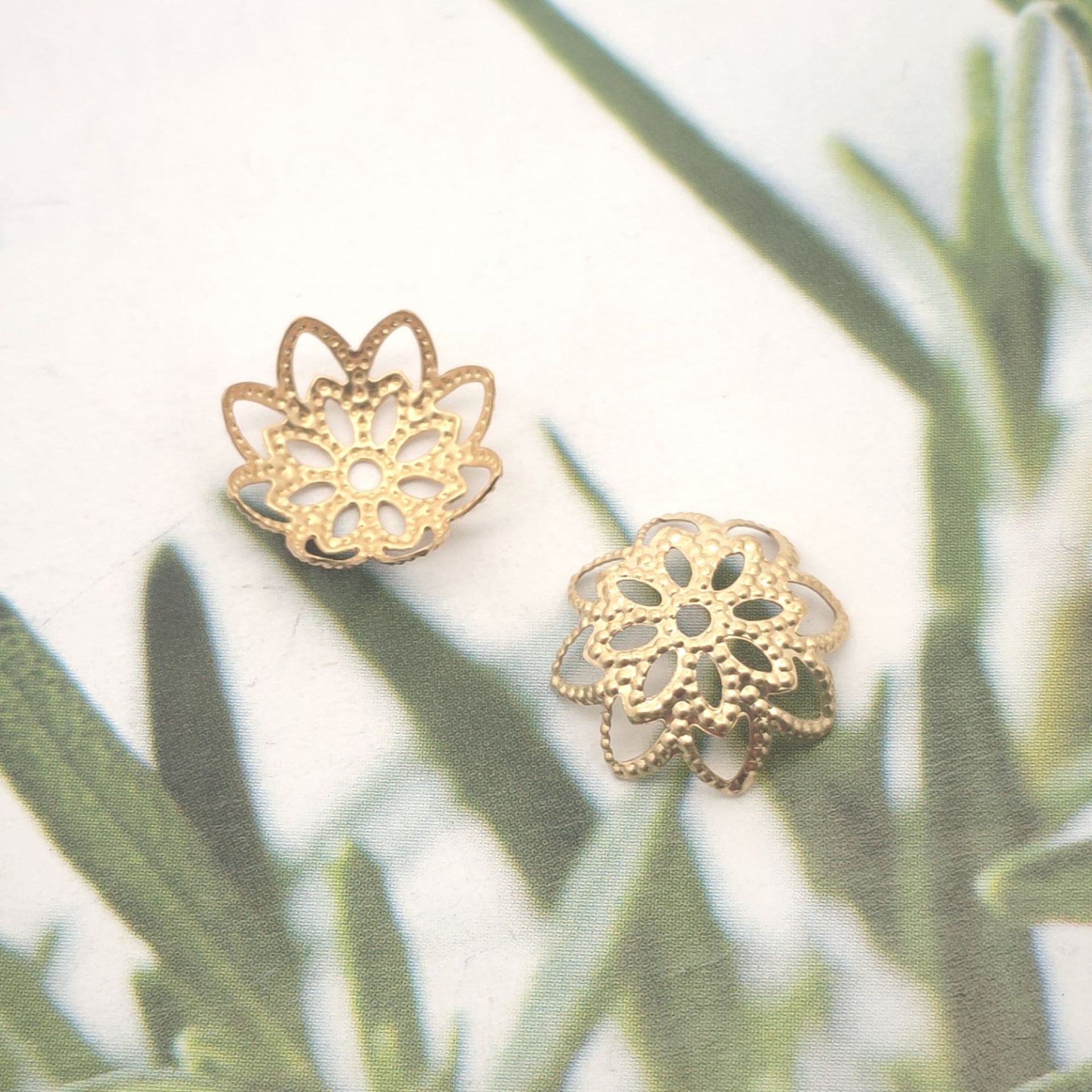 Rostfritt stål Pärlor Keps, 304 rostfritt stål, Blomma, DIY, gyllene, 10mm, Ca 100PC/Bag, Säljs av Bag