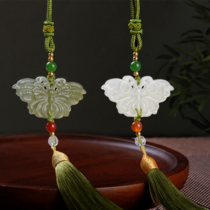 Jade Hängen, Hetian Jade, Fjäril, Sned, Naturligt & DIY & olika stilar för val, 45x25x5mm, Säljs av PC