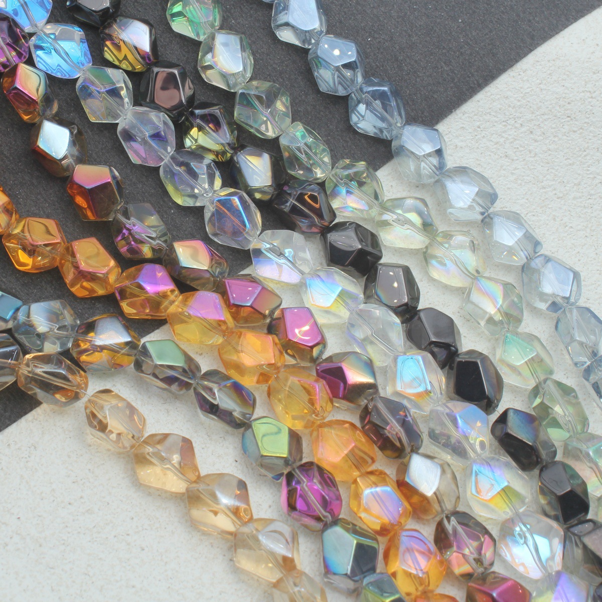 Kristall Bead, Geometriskt mönster, färgrik pläterade, DIY & fasetterad, fler färger för val, 13x14x10mm, Ca 50PC/Strand, Säljs av Strand