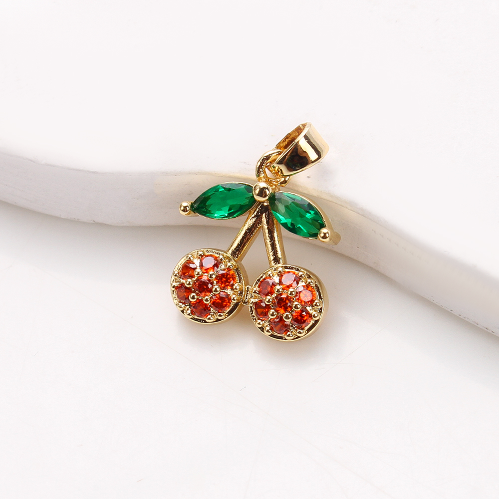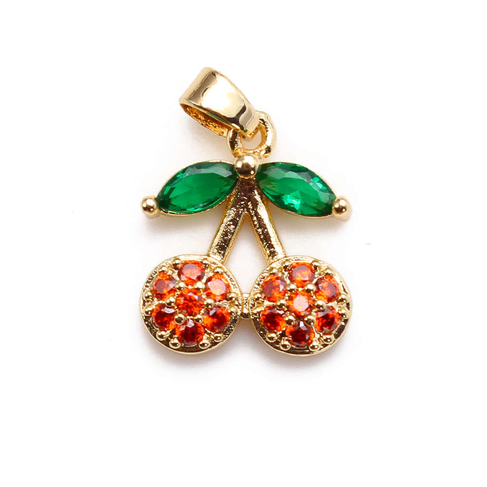 Kubik Zirkonium mikro bana Mässing hängande, Körsbär, plated, DIY & micro bana cubic zirconia, gyllene, nickel, bly och kadmium gratis, 13.47x3.86x19.18mm, 20PC/Bag, Säljs av Bag