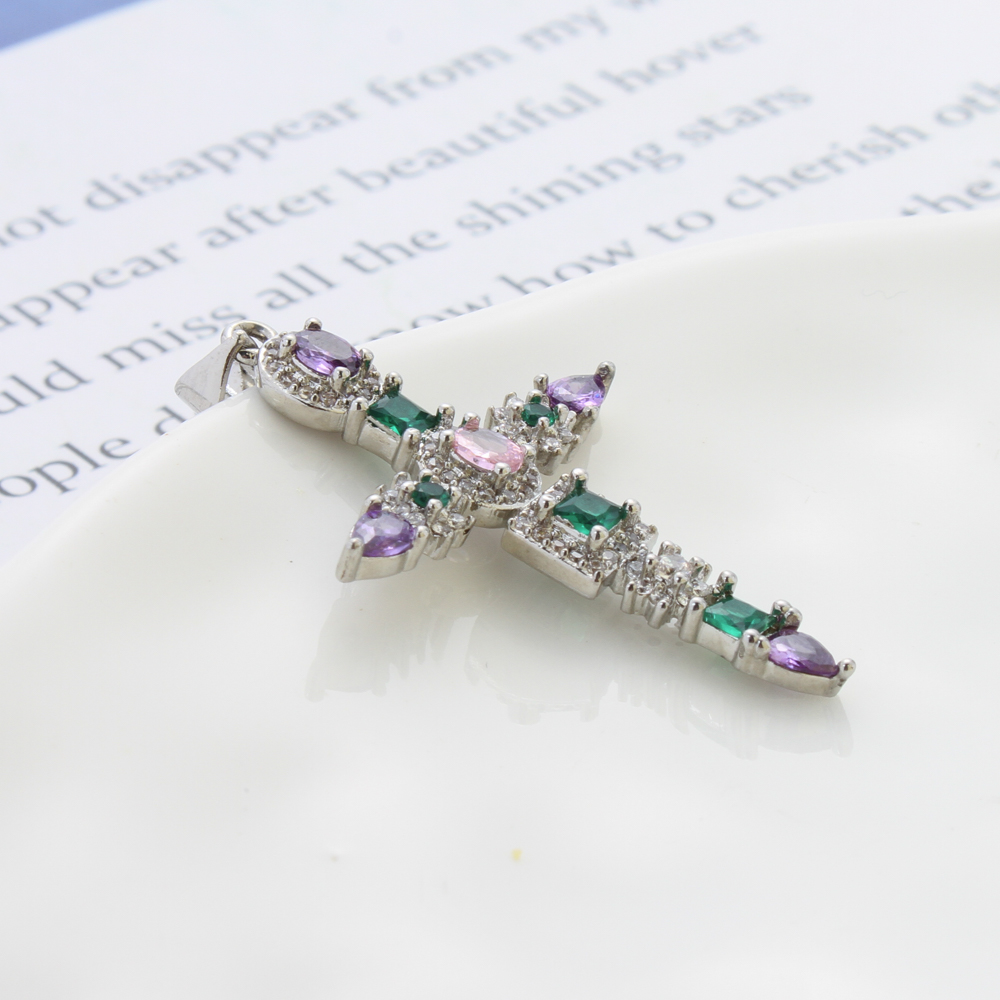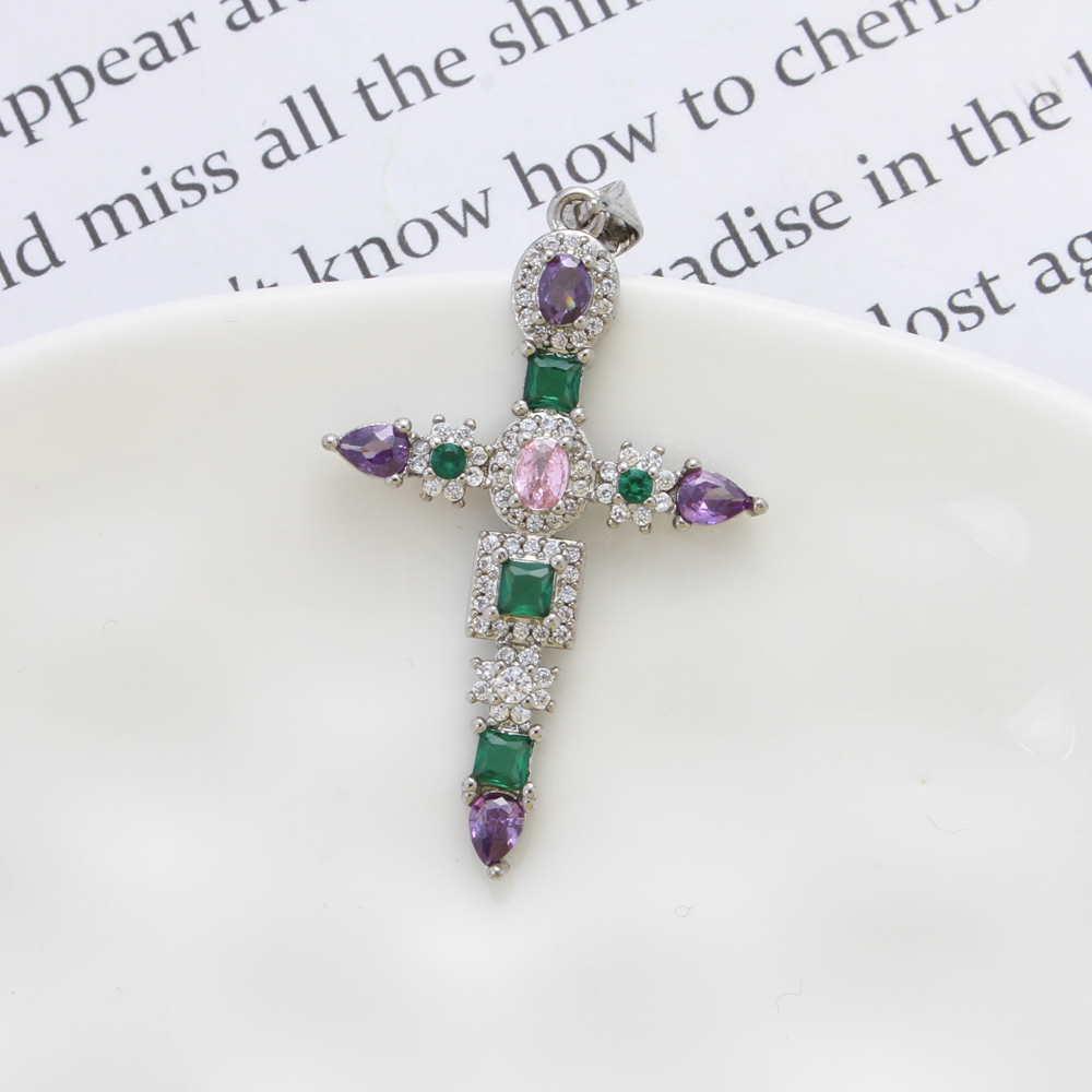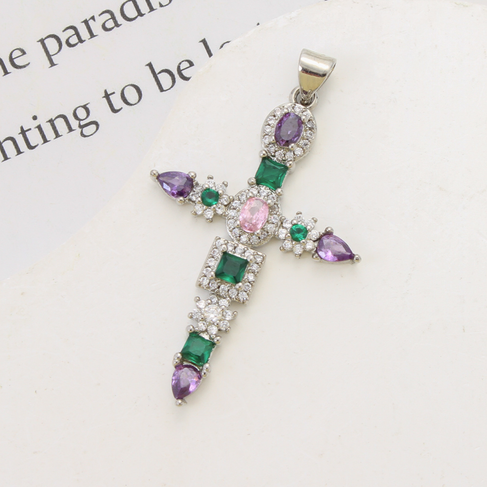 Kubik Zirkonium mikro bana Mässing hängande, Cross, plated, DIY & micro bana cubic zirconia, fler färger för val, nickel, bly och kadmium gratis, 39x25.20x3.60mm, Säljs av PC