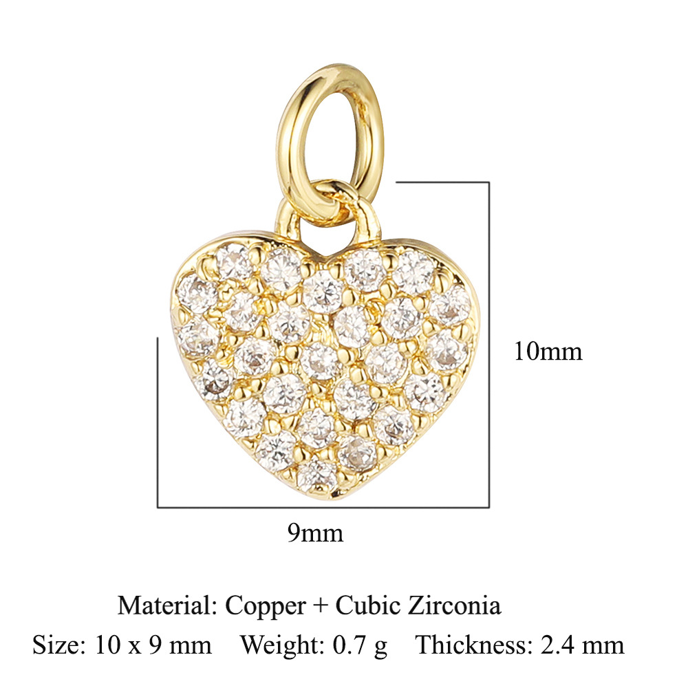 Kubik Zirkonium mikro bana Mässing hängande, Hjärta, guldfärg pläterade, DIY & micro bana cubic zirconia & emalj, fler färger för val, 9x9x2mm, Säljs av PC