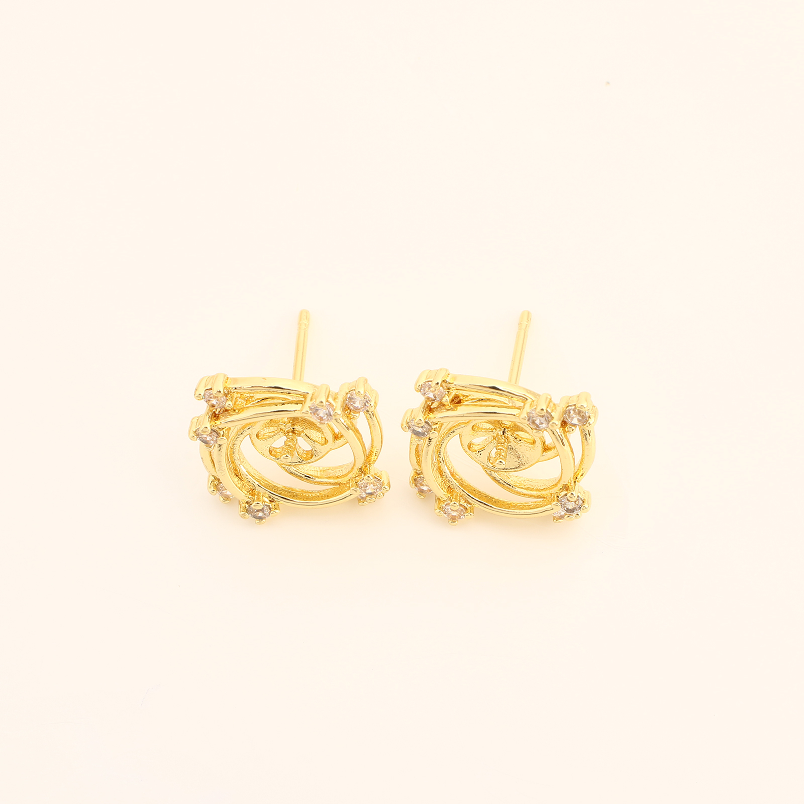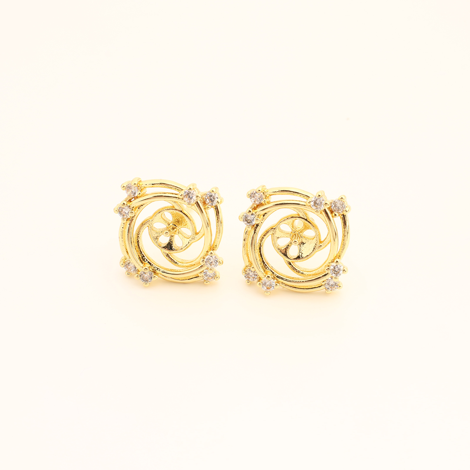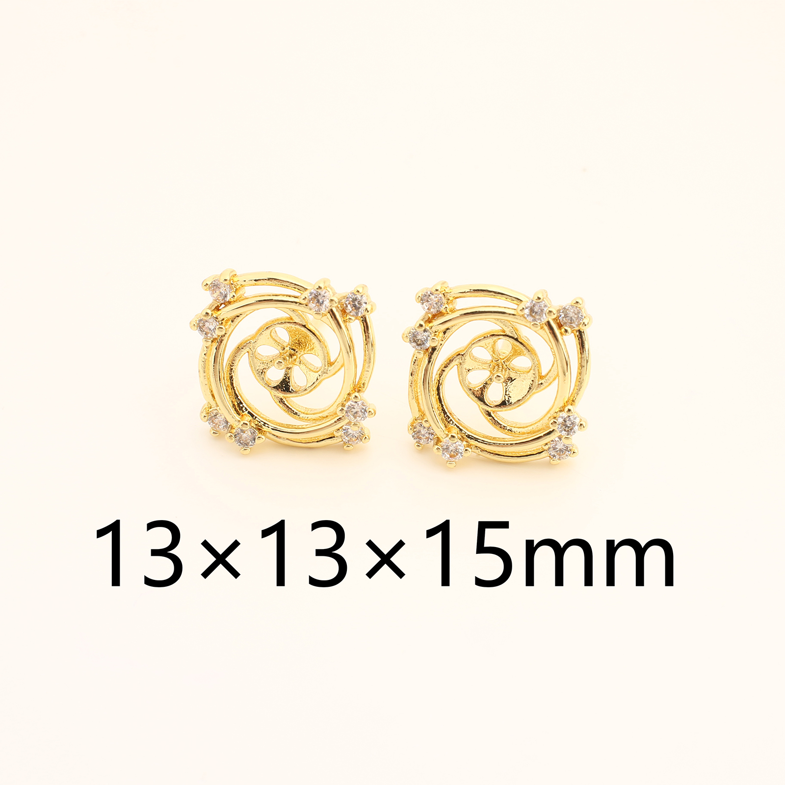 Mässing Örhänge Inlägg, DIY & micro bana cubic zirconia & ihålig, fler färger för val, 12x12x14mm, Säljs av Par