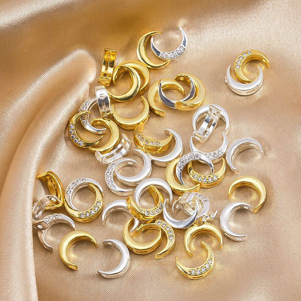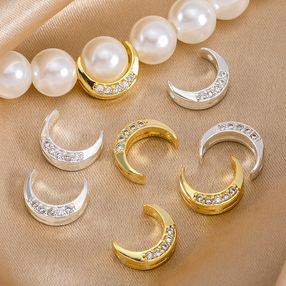 Mässing Spacer Bead, Månen, plated, DIY & med strass, fler färger för val, 8.40x10.30mm, Säljs av PC
