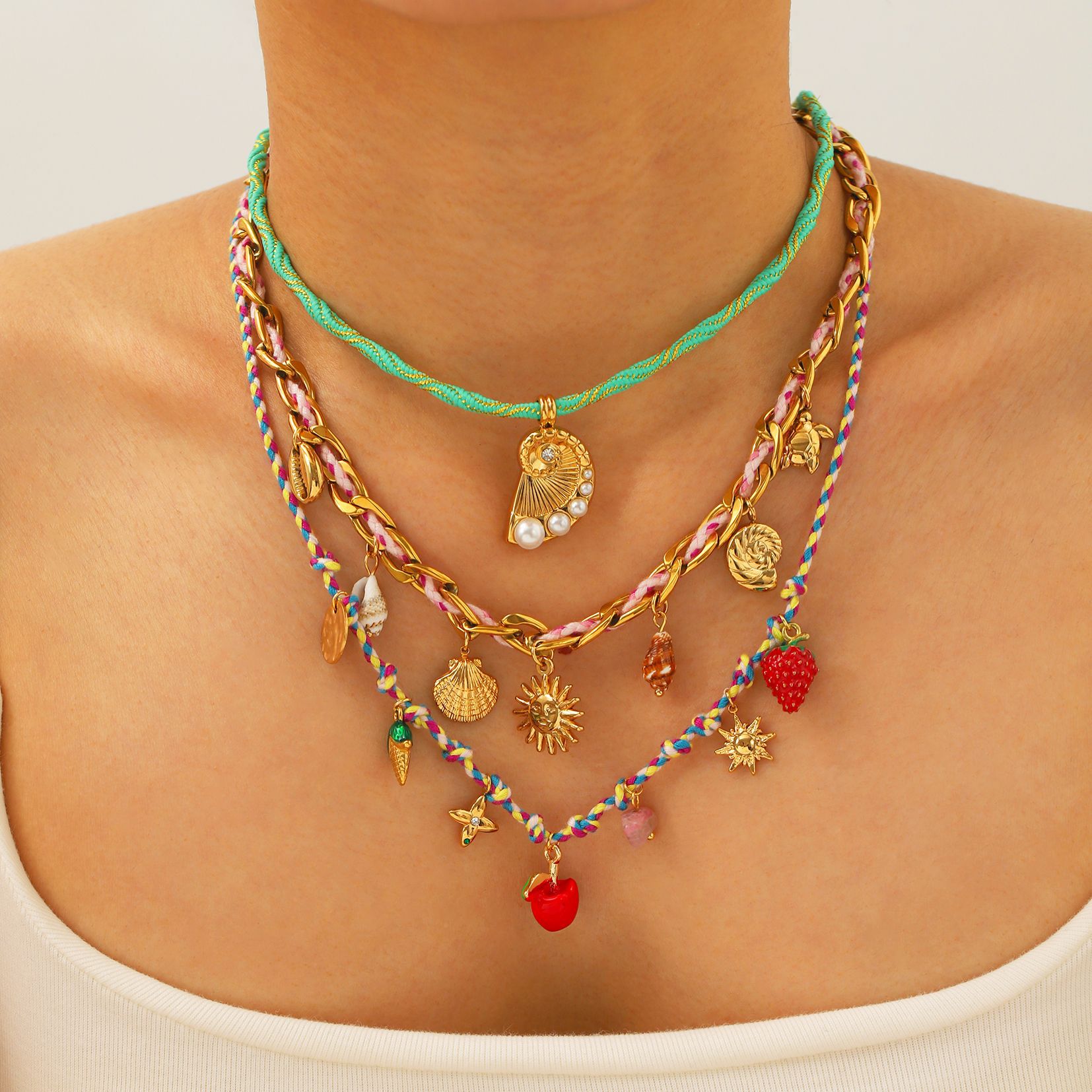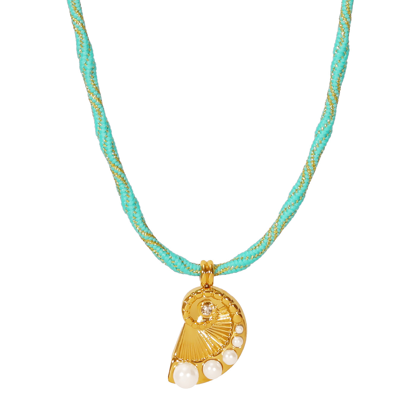 Mode halsband smycken, 304 rostfritt stål, med Bomullstråd & Shell & Plast Pearl, guldfärg pläterade, mode smycken & med strass, fler färger för val, Säljs av PC