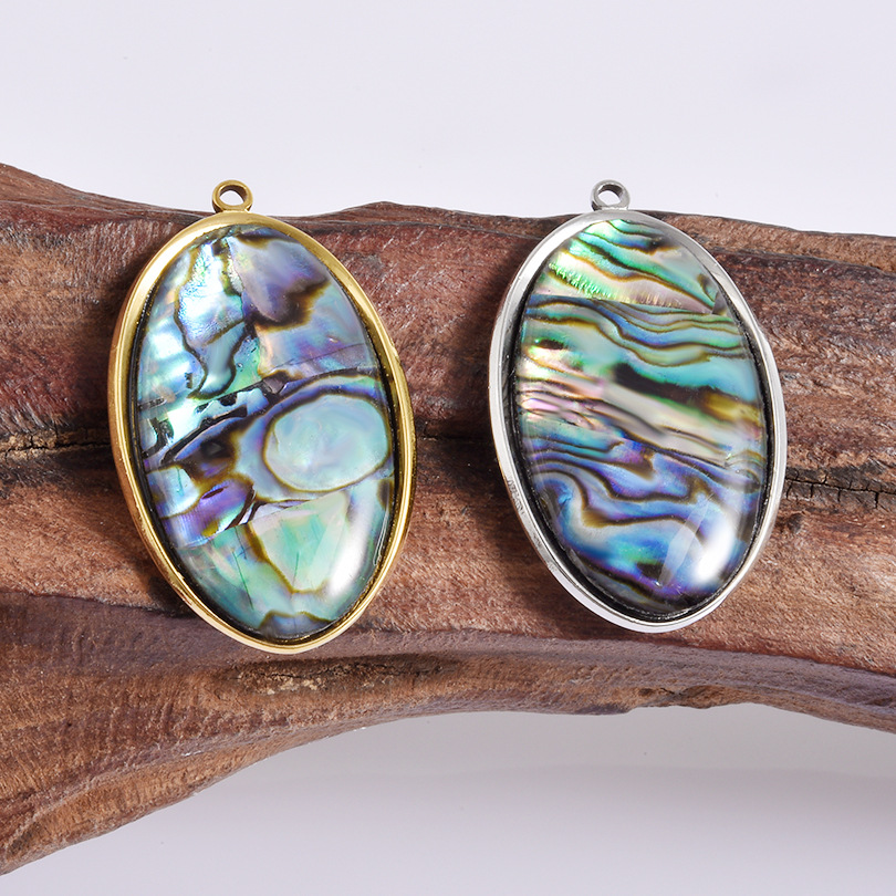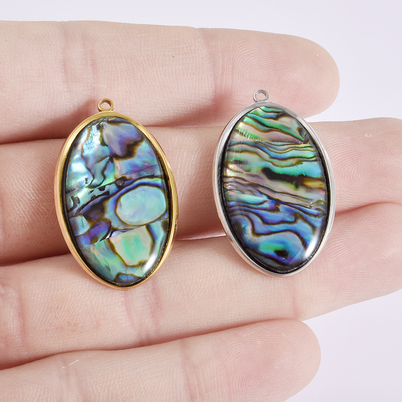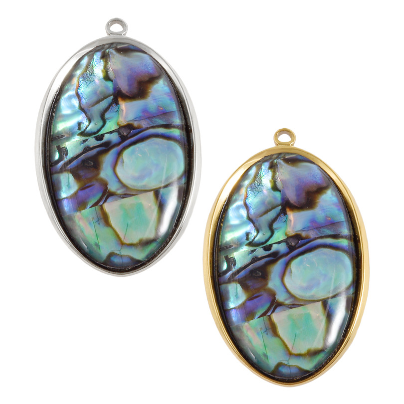 Natural Abalone Shell Halsband, 304 rostfritt stål, med Havsöra, Flat Oval, plated, DIY, fler färger för val, 19x22mm, 10PC/Bag, Säljs av Bag