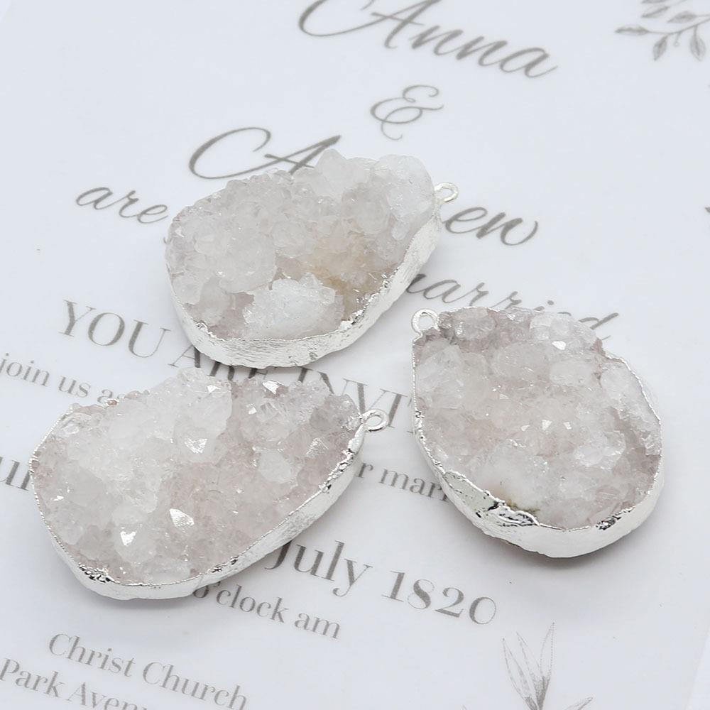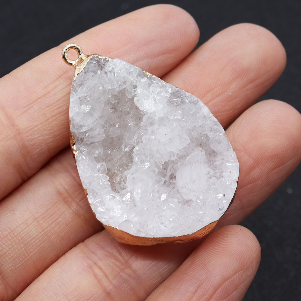 Naturlig kvarts Druzy Häng, Naturliga Quartz, med Zink Alloy, Oregelbunden, plated, DIY, fler färger för val, pendant size 20x30-30x45mm, Säljs av PC