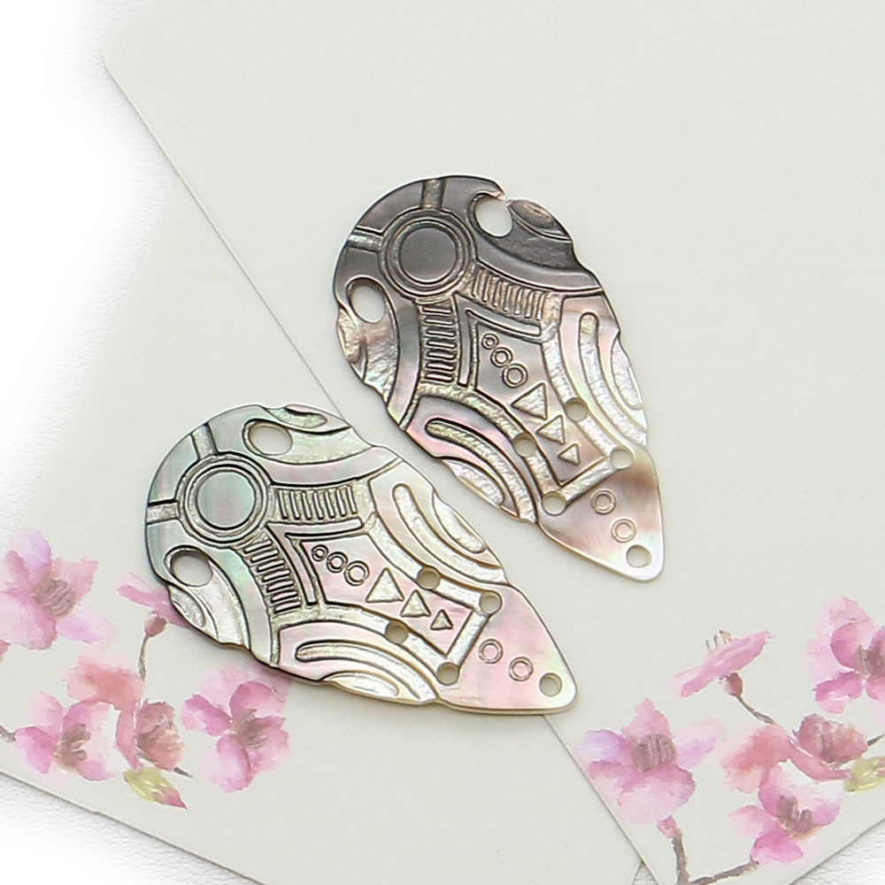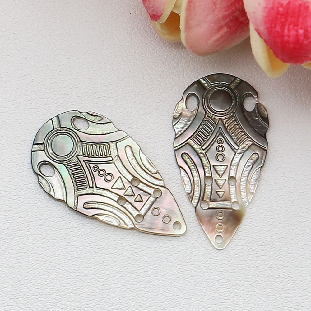 Naturlig svart Shell Halsband, DIY, blandade färger, 21x39mm, Säljs av PC