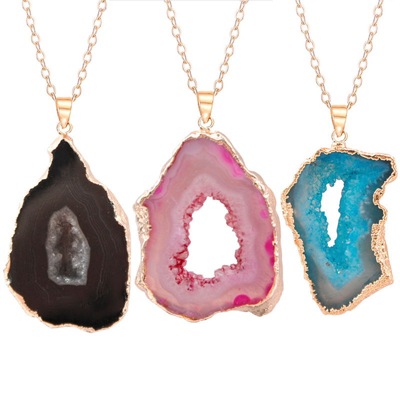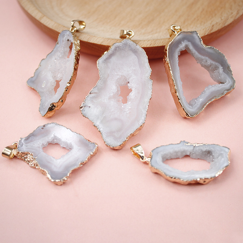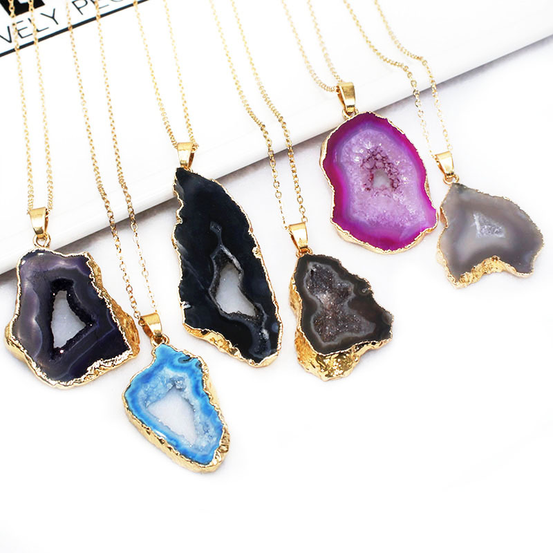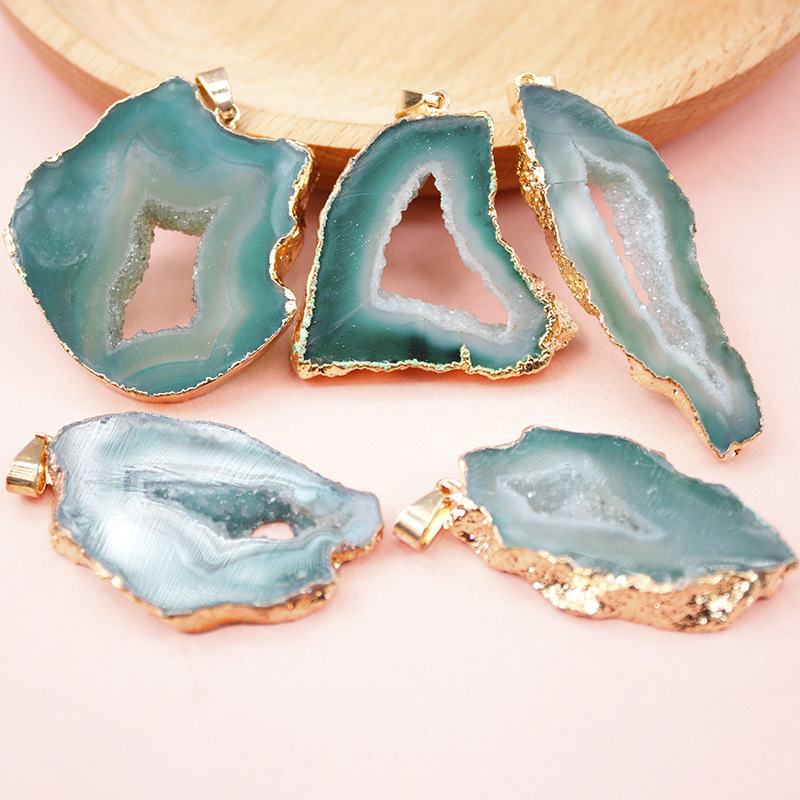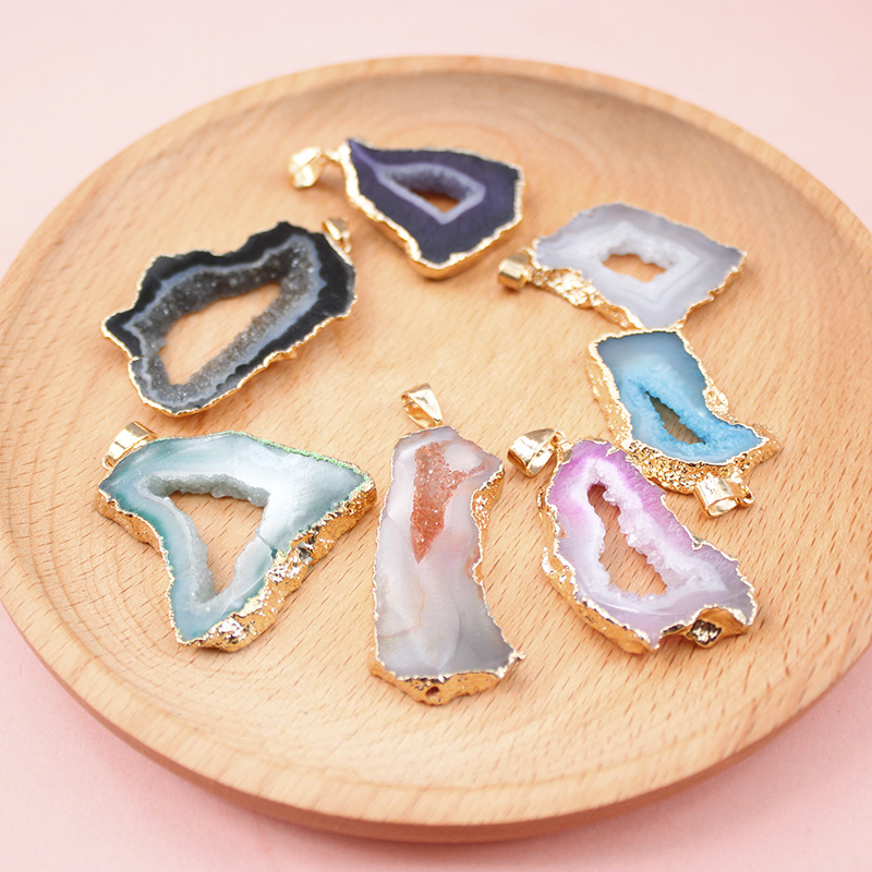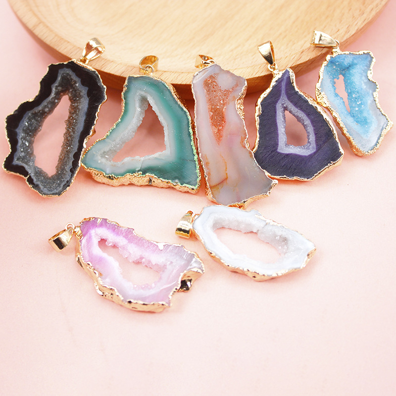 Naturliga agat Druzy hänge, Mässing, med Agat, plated, slumpmässigt skickade & DIY, fler färger för val, nickel, bly och kadmium gratis, Sizeuff1a25X43mm, Säljs av PC