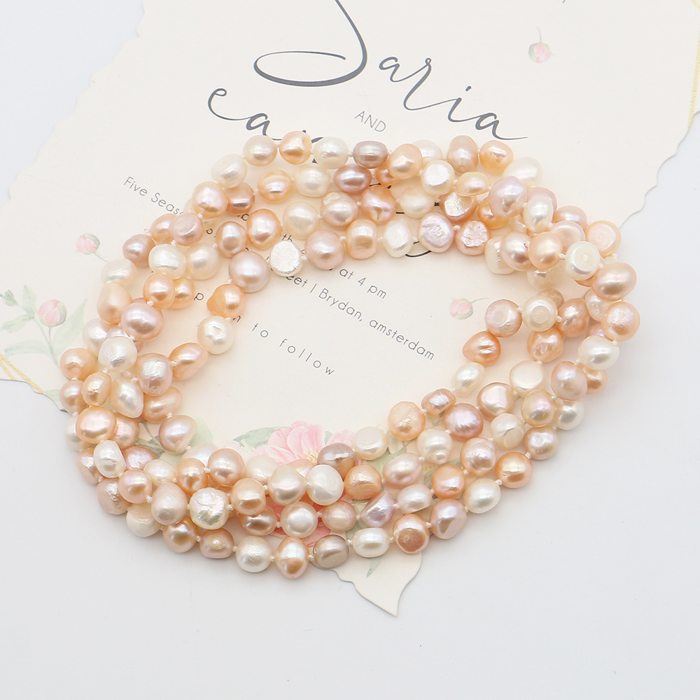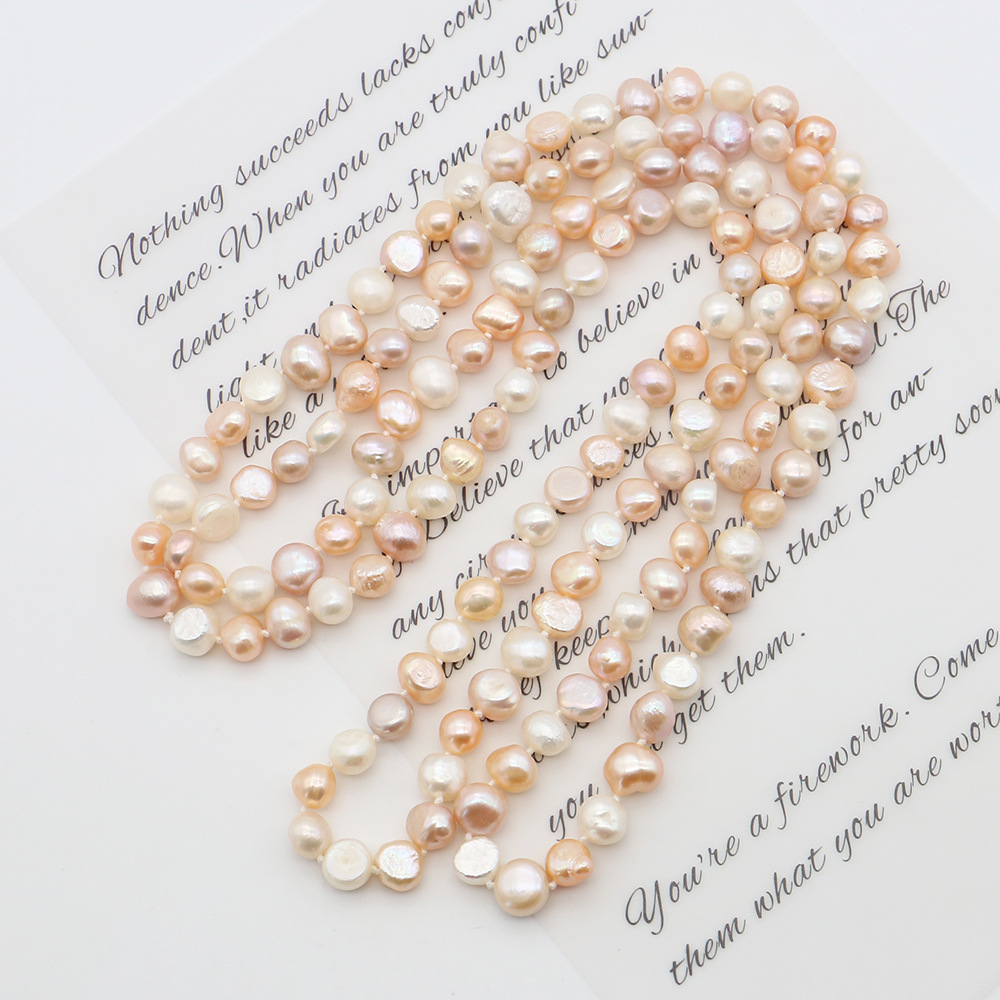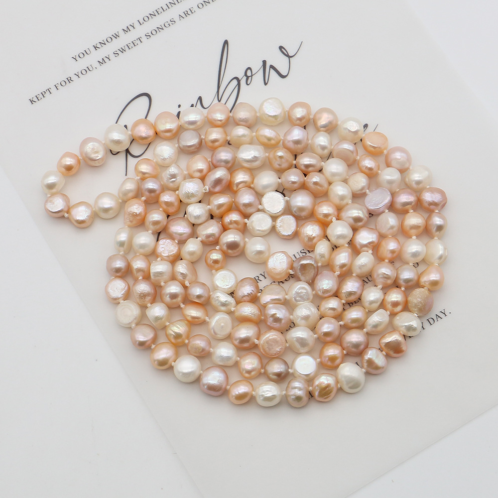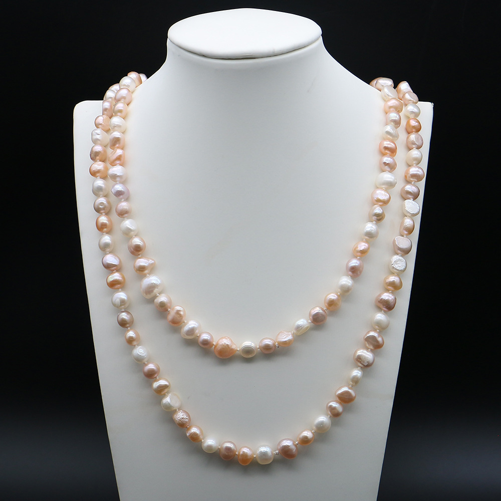Naturliga sötvatten pärla långt halsband, Freshwater Pearl, Barock, mode smycken, blandade färger, 7-8mm, Såld Per 116 cm Strand