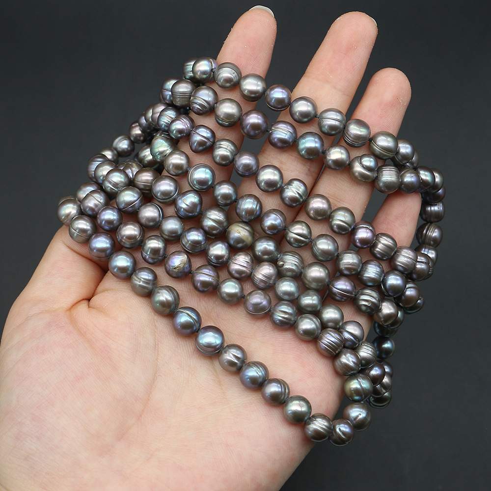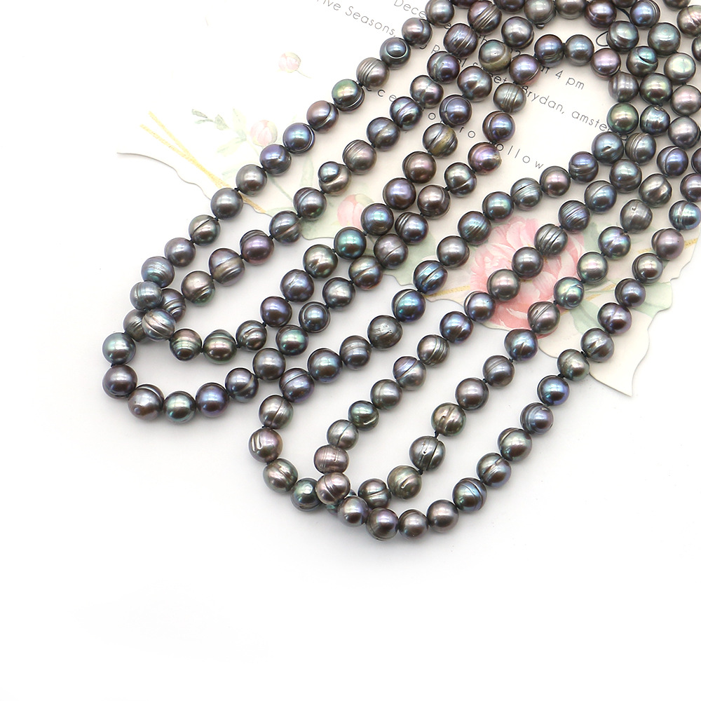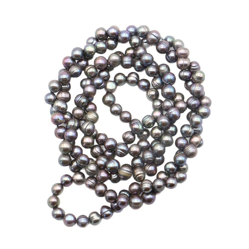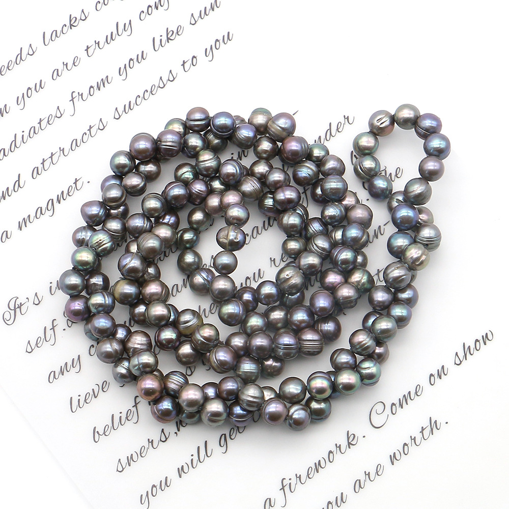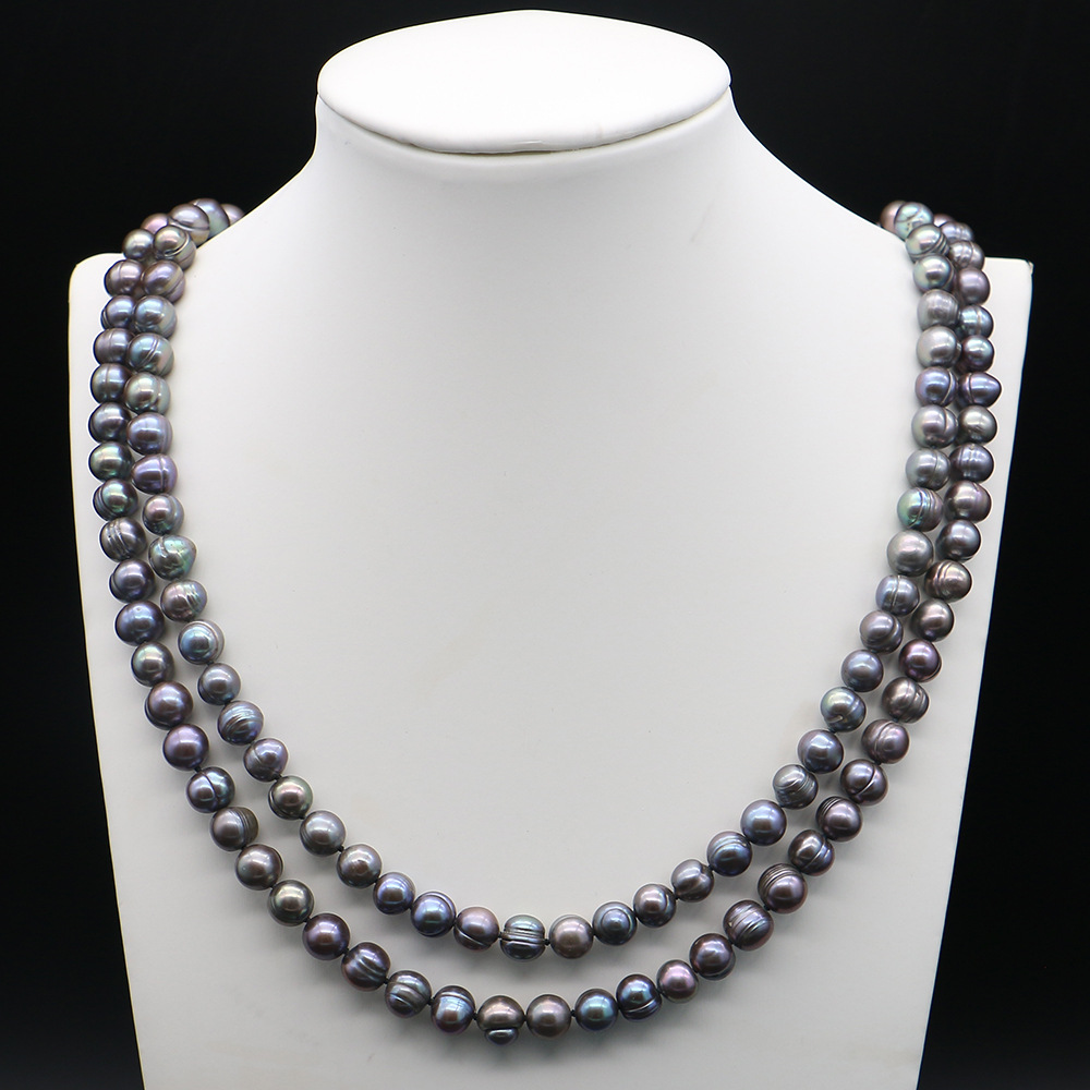 Naturliga sötvatten pärla långt halsband, Freshwater Pearl, Rund, mode smycken, blandade färger, 7-8mm, Såld Per 122 cm Strand