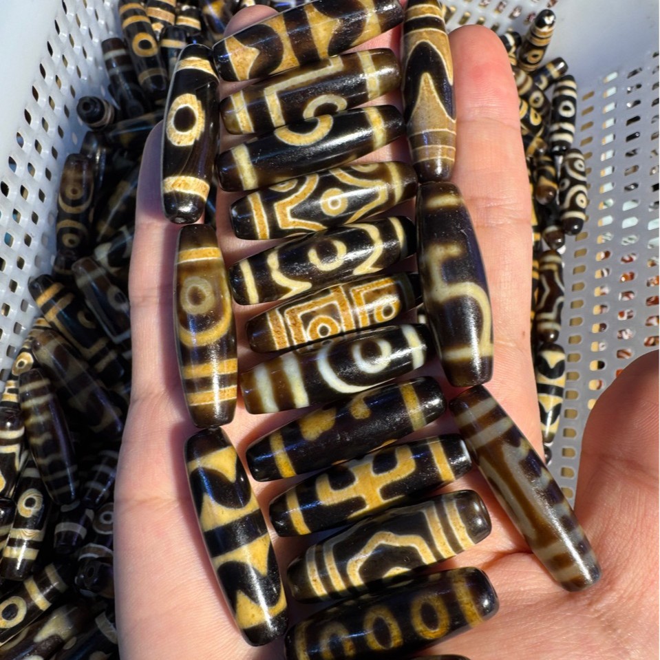 Naturliga tibetanska agat Dzi Pärlor, slumpmässigt skickade & blandad mönster & DIY, 38mm, 5PC/Bag, Säljs av Bag