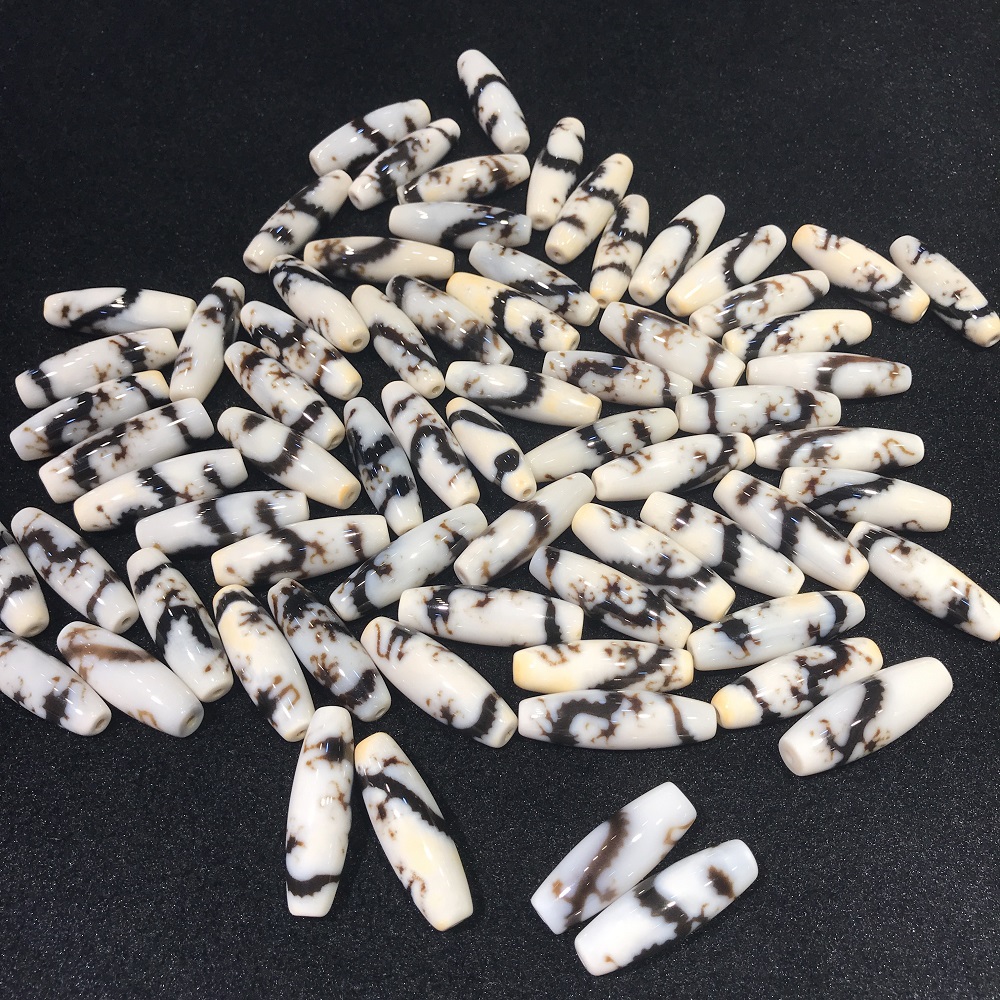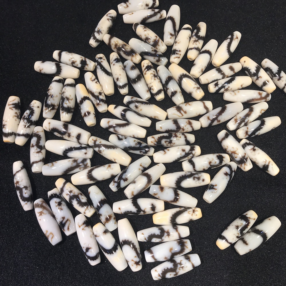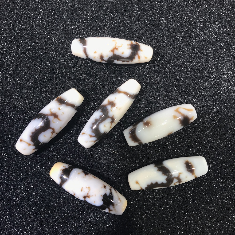 Naturliga tibetanska agat Dzi Pärlor, Oval, olika kvaliteter för val & fem-klo dragon & två ton, 38x12x2.50mm, Hål:Ca 2mm, Säljs av PC