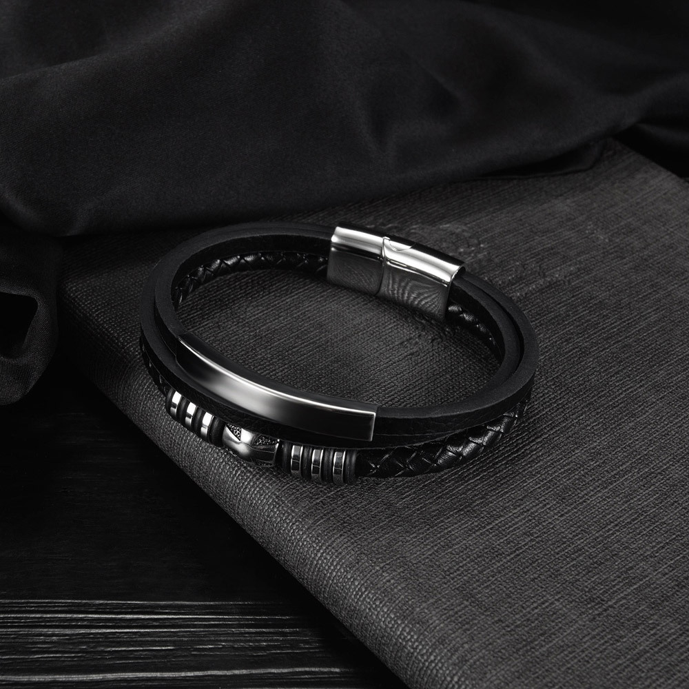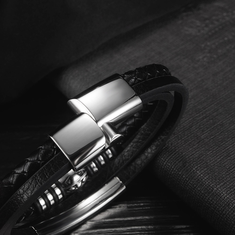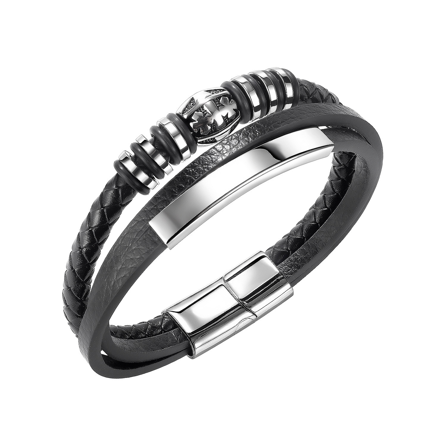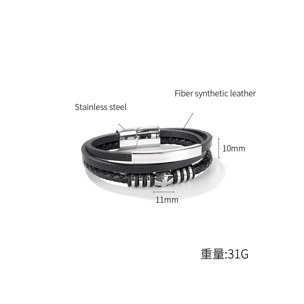 PU Cord Armband, 304 rostfritt stål, med PU, tre lager & olika längd för val & för människan, svart, Säljs av PC