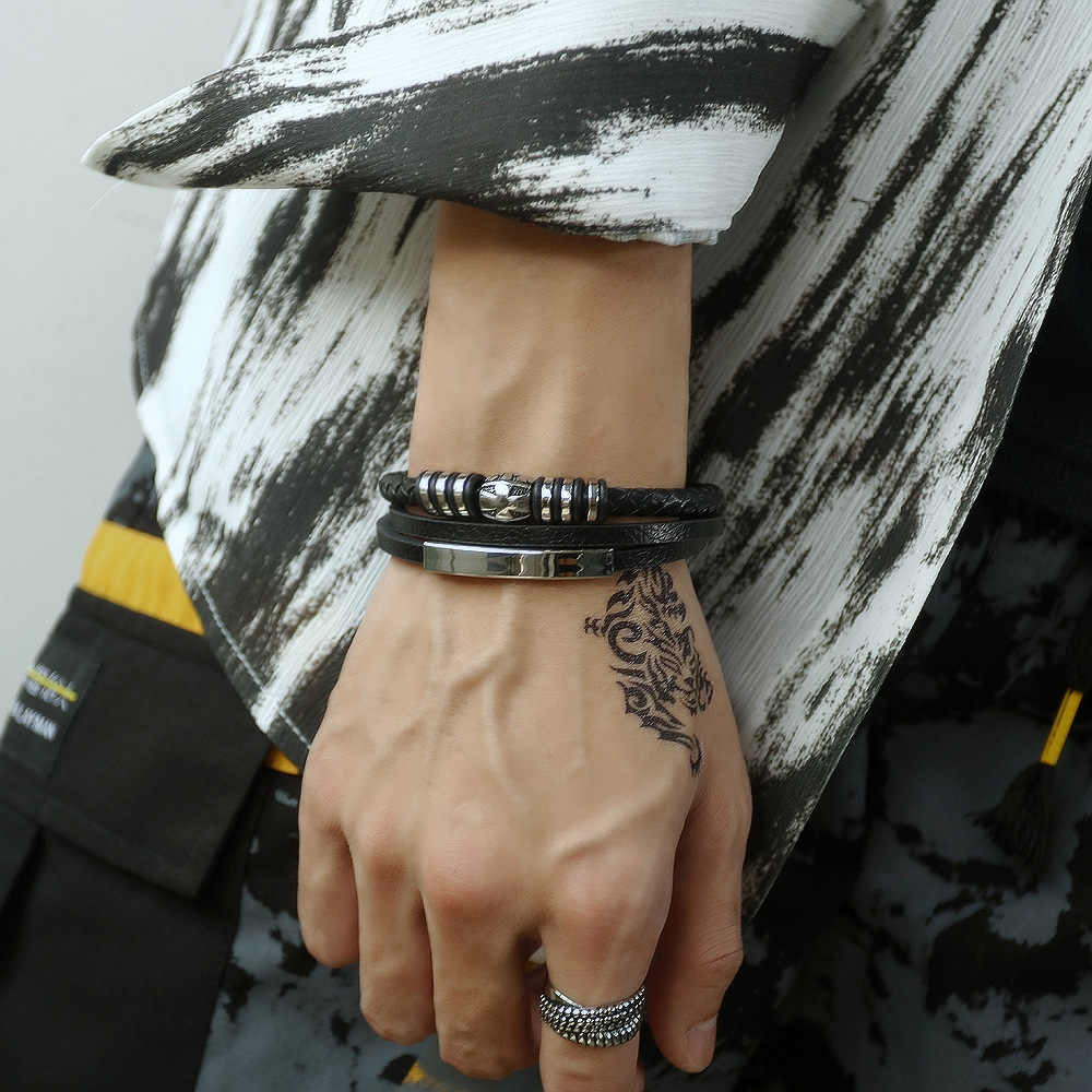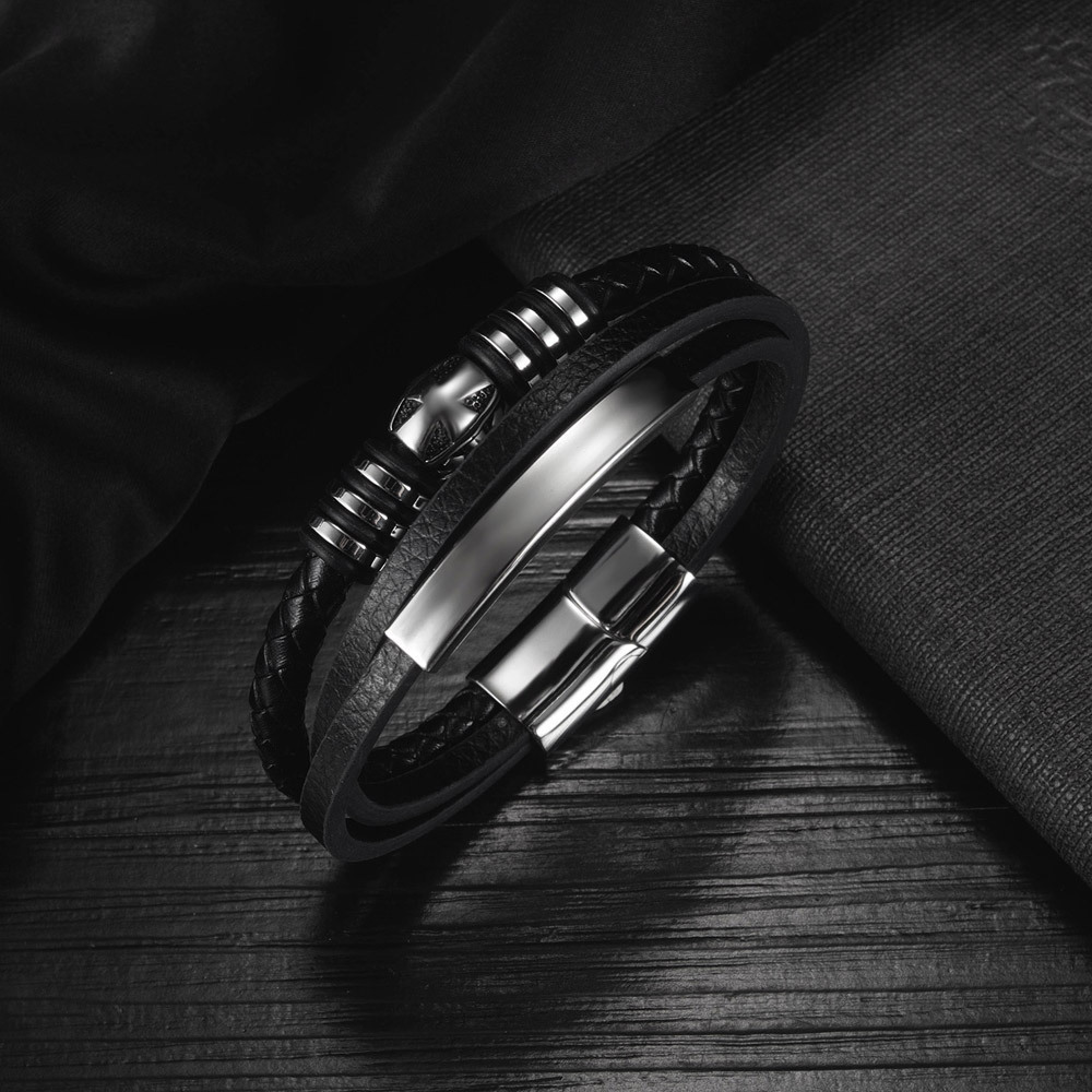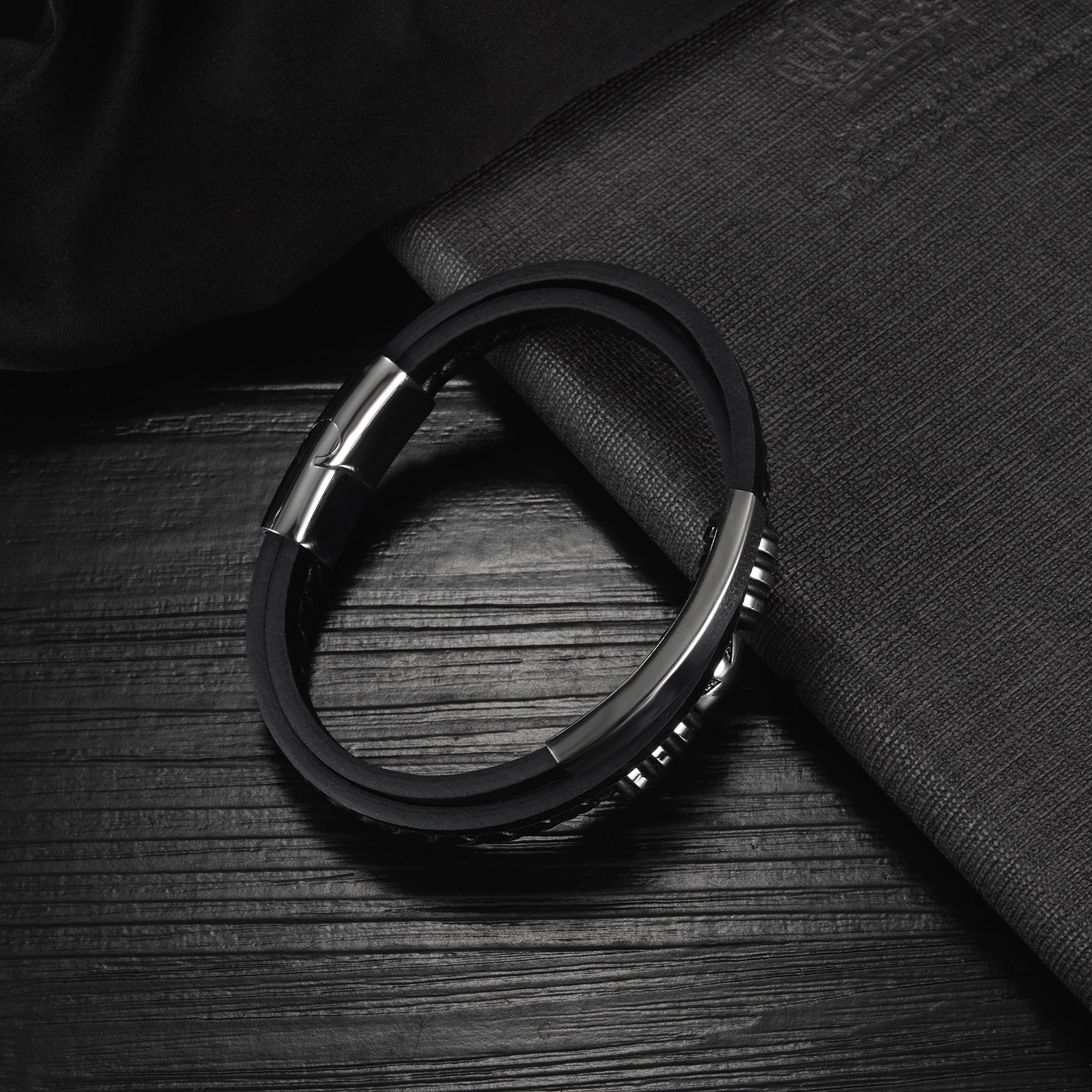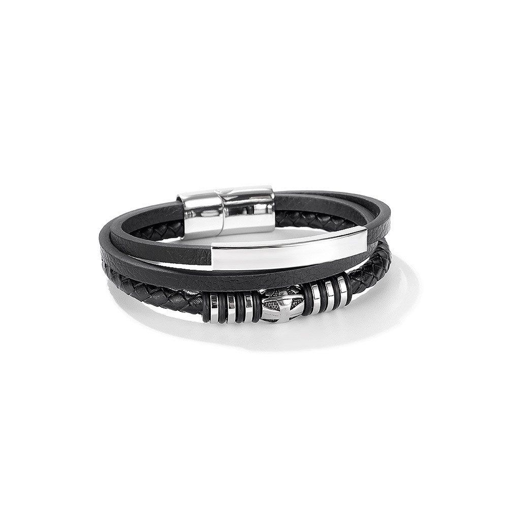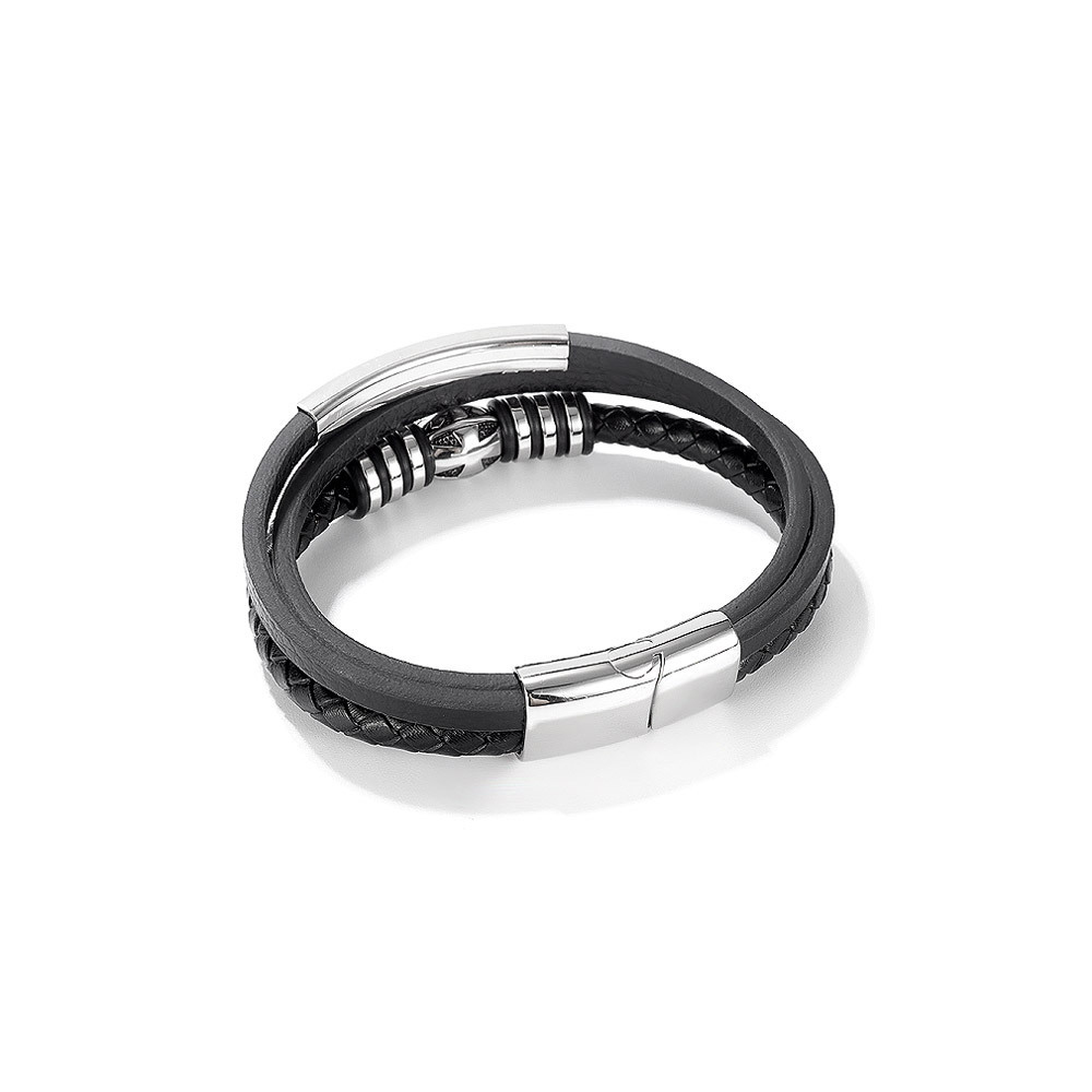 PU Cord Armband, 304 rostfritt stål, med PU, tre lager & olika längd för val & för människan, svart, Säljs av PC