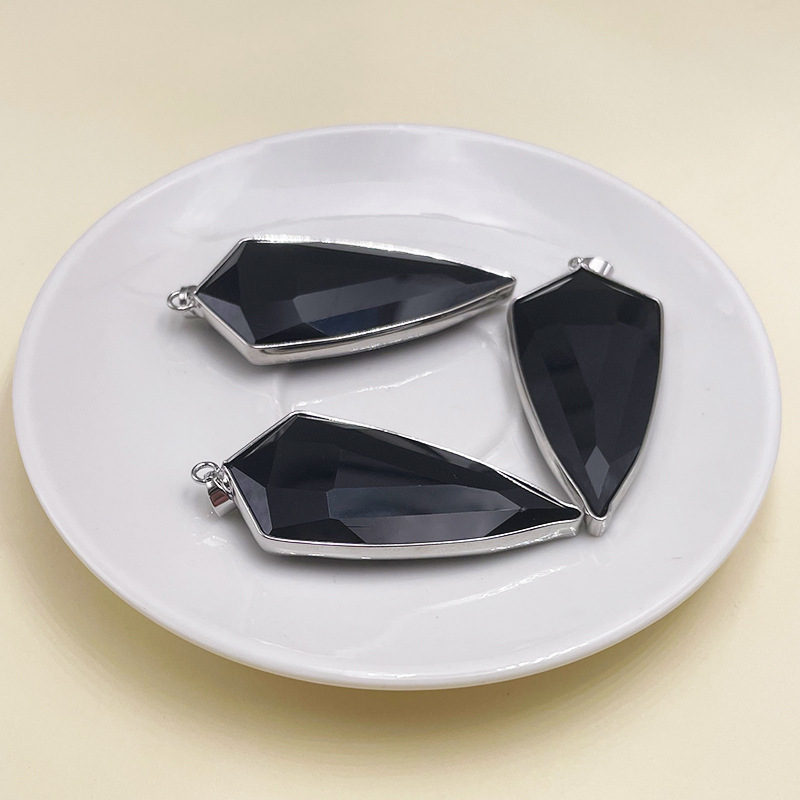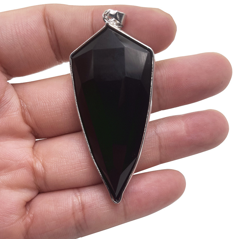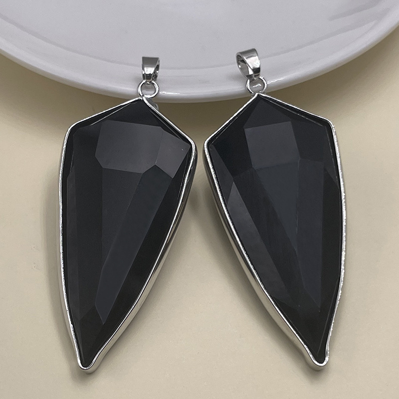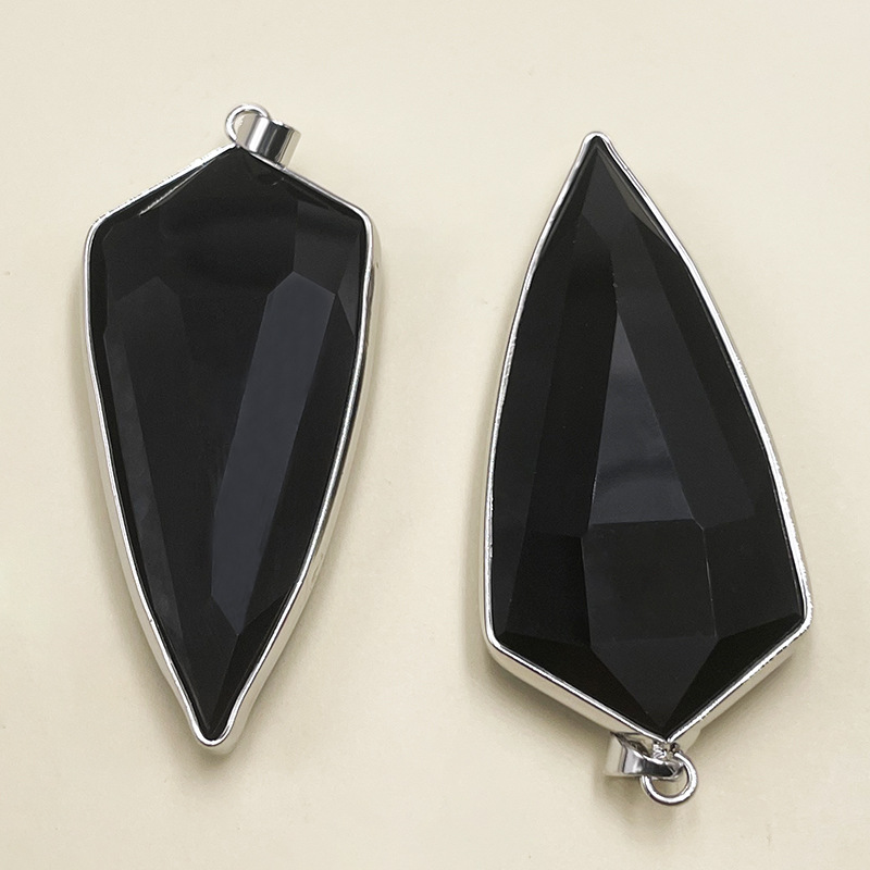 Svart obsidian Häng, silver pläterad, DIY, svart, nickel, bly och kadmium gratis, 25x55mm, Säljs av PC