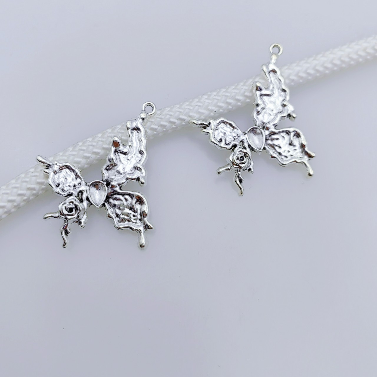 Zink legering hängande strass inställning, Zink Alloy, Fjäril, antik silver pläterad, DIY, nickel, bly och kadmium gratis, 35x38mm, Ca 100PC/Bag, Säljs av Bag
